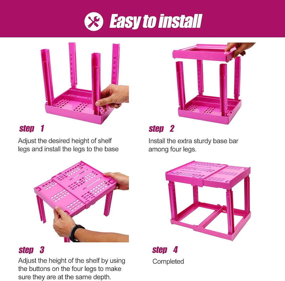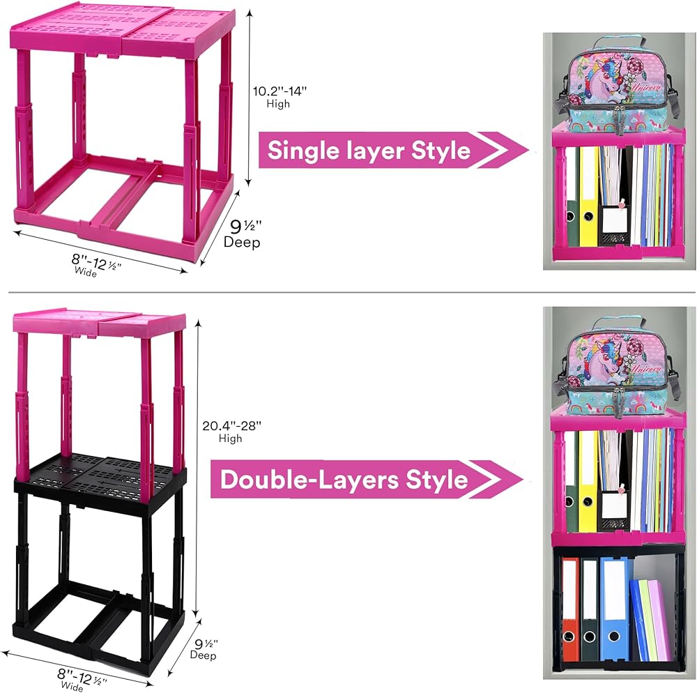 نطاق واسع من قابلية التعديل: قم بتخصيص تنظيم الخزانة الخاصة بك دون عناء مع رف الخزانة متعدد الاستخدامات. يمكن تعديله من 10.6 بوصة إلى 15 بوصة ارتفاعًا ومن 7.9 بوصة إلى 12 بوصة عرضًا، مما يضمن ملاءمة مثالية لجميع أحجام الخزانات وزيادة مساحة التخزين.