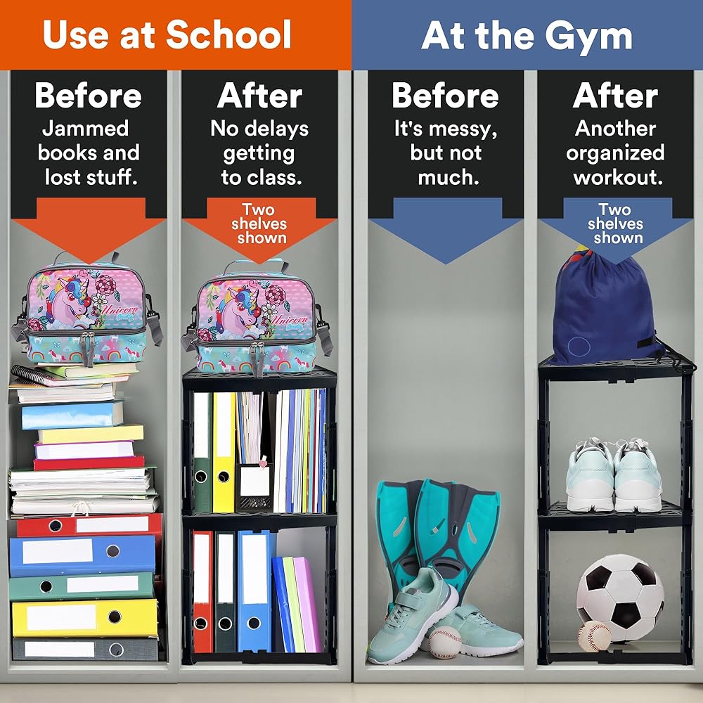 متعدد الاستخدامات ومتعدد الأغراض: مثالي للمدرسة وصالة الألعاب الرياضية وخزائن العمل، كما أن الرف القابل للتعديل الخاص بنا مثالي أيضًا للاستخدام في خزائن المطبخ والتخزين بجانب السرير وخزائن المكتب. عزز مؤسستك في أي مكان باستخدام هذا الحل العملي والمتين.