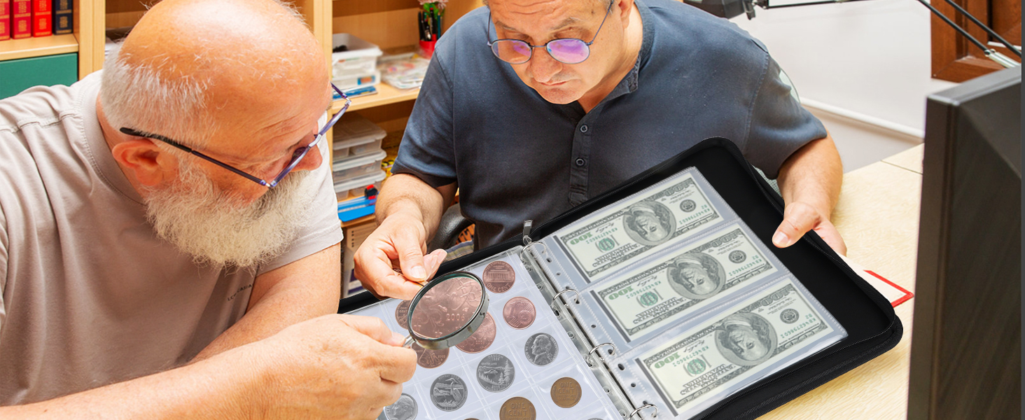• هدية مثالية لهواة جمع العملات المعدنية: مناسبة لجمع الأوراق النقدية والرموز والميداليات والطوابع وأكثر من ذلك، يأتي حامل العملات المعدنية الخاص بنا مزودًا بعدسة مكبرة محمولة 30 مرة لرؤية واضحة. إنها طريقة رائعة لتخزين مجموعتك وعرضها، مما يجعلها هدية ممتازة للمبتدئين والمحترفين في مجال جمع العملات على حدٍ سواء.