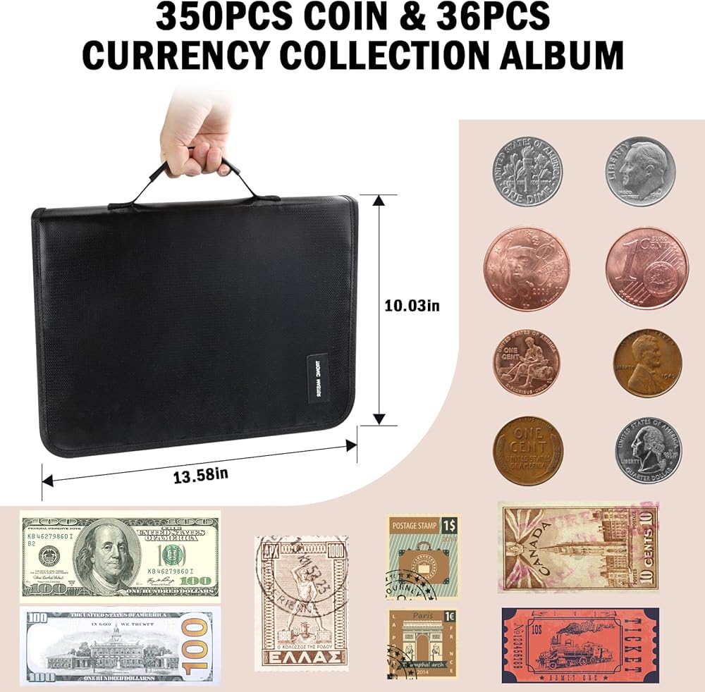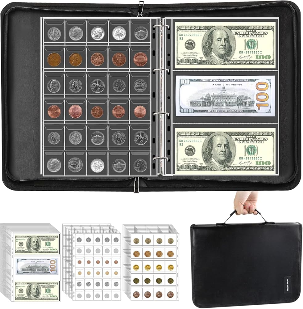 منظم حامل كتب مجموعة العملات المعدنية - 386 جيبًا للعملات المعدنية المقاومة للحريق، كتاب ألبوم لهواة الجمع، 36 كمًا، حقيبة تخزين الأموال، مجموعة العملات المعدنية، بيل بينيس، أرباع الطوابع النقدية
