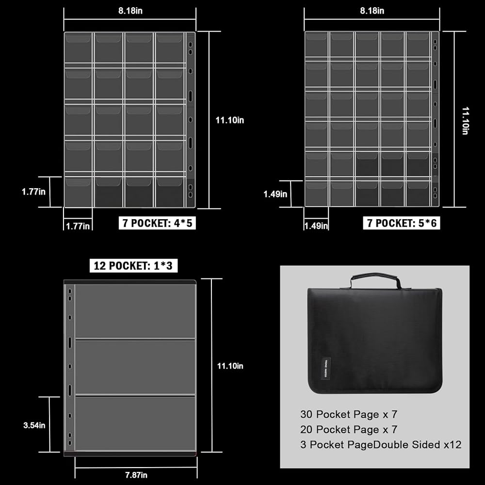 • مستلزمات جمع العملات المعدنية ذات 385 جيبًا: يمكن لكتاب جمع العملات المعدنية الخاص بنا أن يحتوي على 350 عملة معدنية و36 عملة ورقية بأحجام مختلفة. حجم صفحات مجلد العملات المعدنية: 8.25*11.1 بوصة، مقاس كل جيب مجلد: 1.6*1.7 بوصة (46*46 مم). 20 جيبًا في كل صفحة لإجمالي أكثر من 140 عملة معدنية و30 جيبًا في كل صفحة لإجمالي 210 عملات معدنية، ويأتي ألبوم العملات مع 12 صفحة من أغلفة العملات المعدنية إجمالي 36 جيبًا للورق والمال ومستلزمات جمع الطوابع. الأبعاد: 13.8 × 10.6 × 1.6 بوصة.