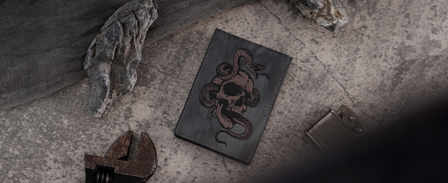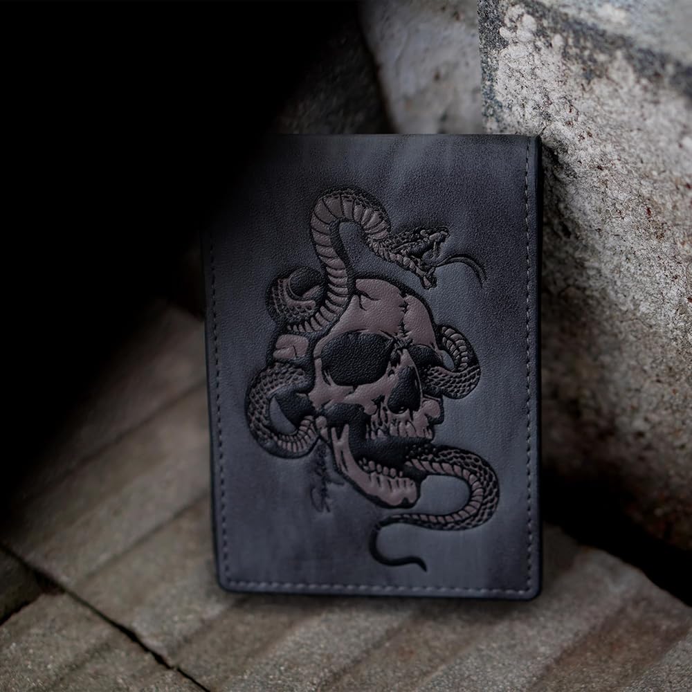 التصميم الأصلي: تتميز هذه المحفظة الرجالية ذات المشبك بتصميم فريد من نوعه باللون الرمادي الداكن مع نمط منقوش على شكل جمجمة رقيق. سوف تقع في حبها تمامًا ولن تنظر أبدًا إلى أي محفظة أخرى. بفضل تصميمها المبتكر والرائع، فهي ضرورية للسفر والتسوق. إنها أفضل محفظة لموسيقى الروك والوشم والدراجات النارية وراكبي الدراجات النارية.