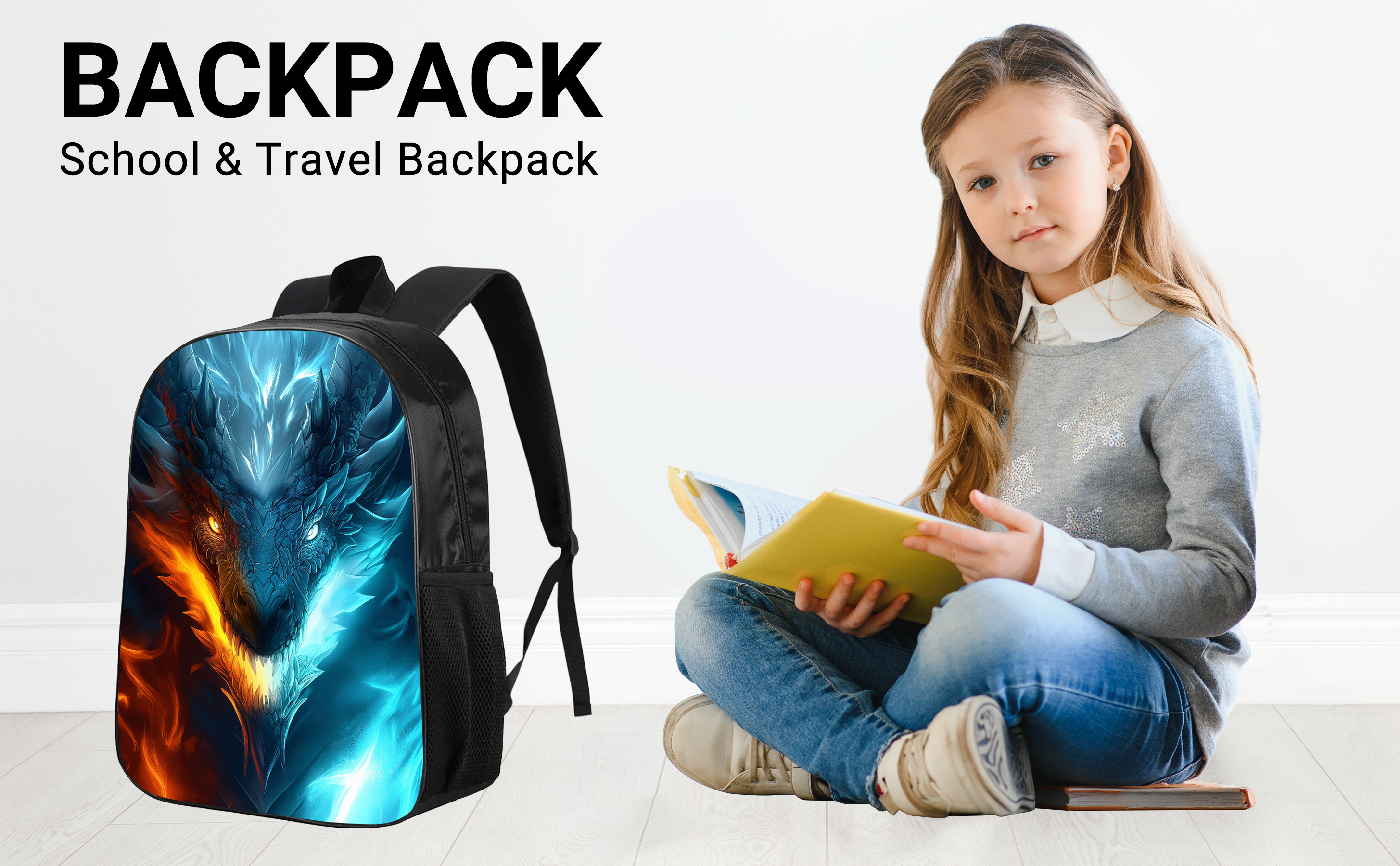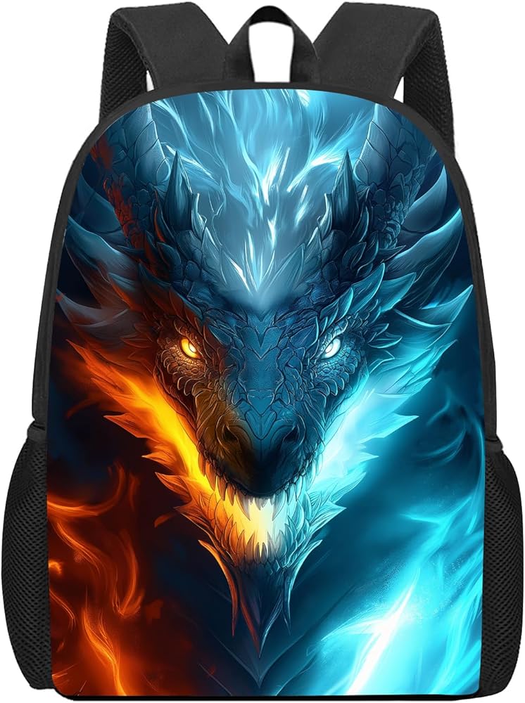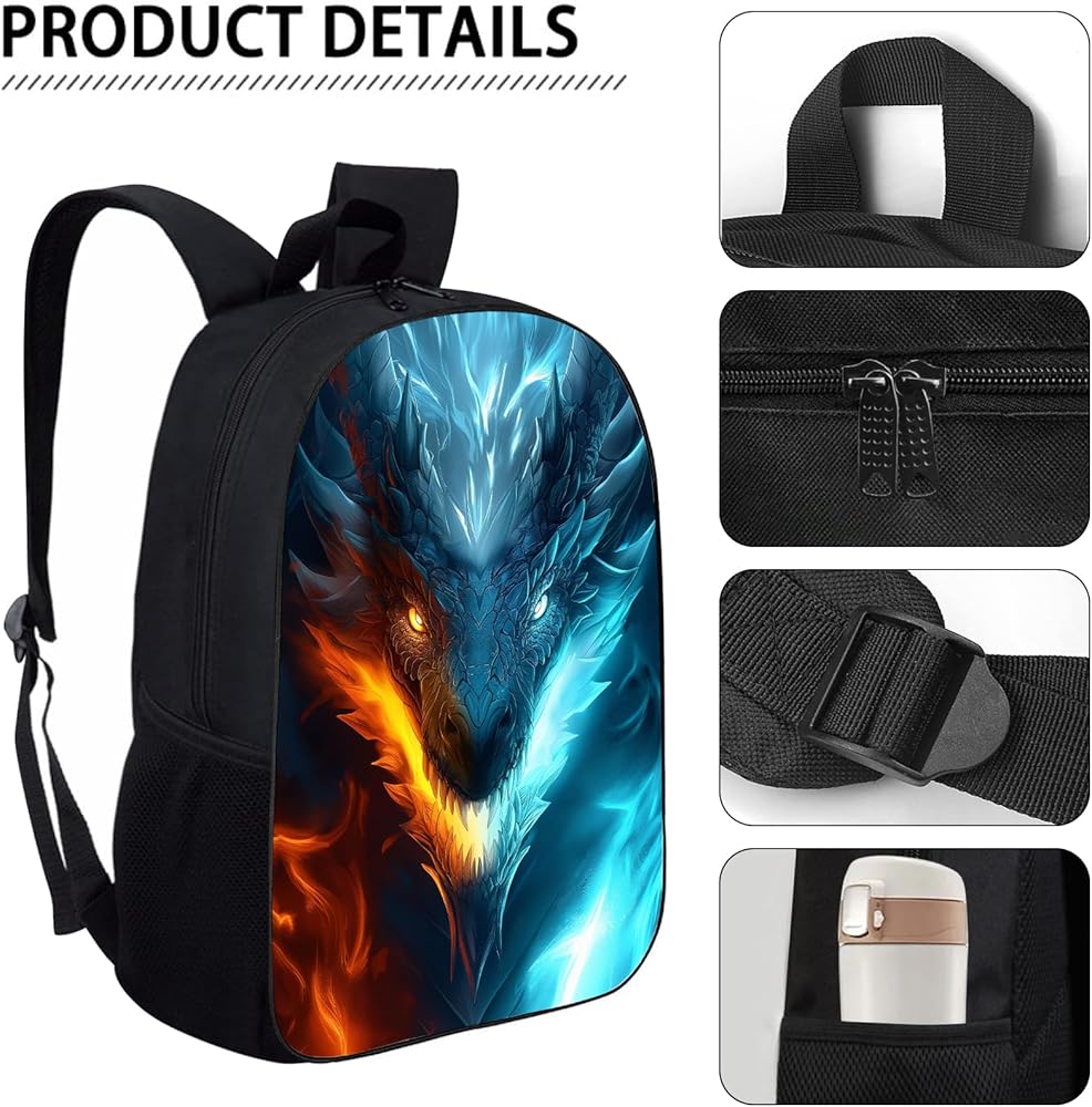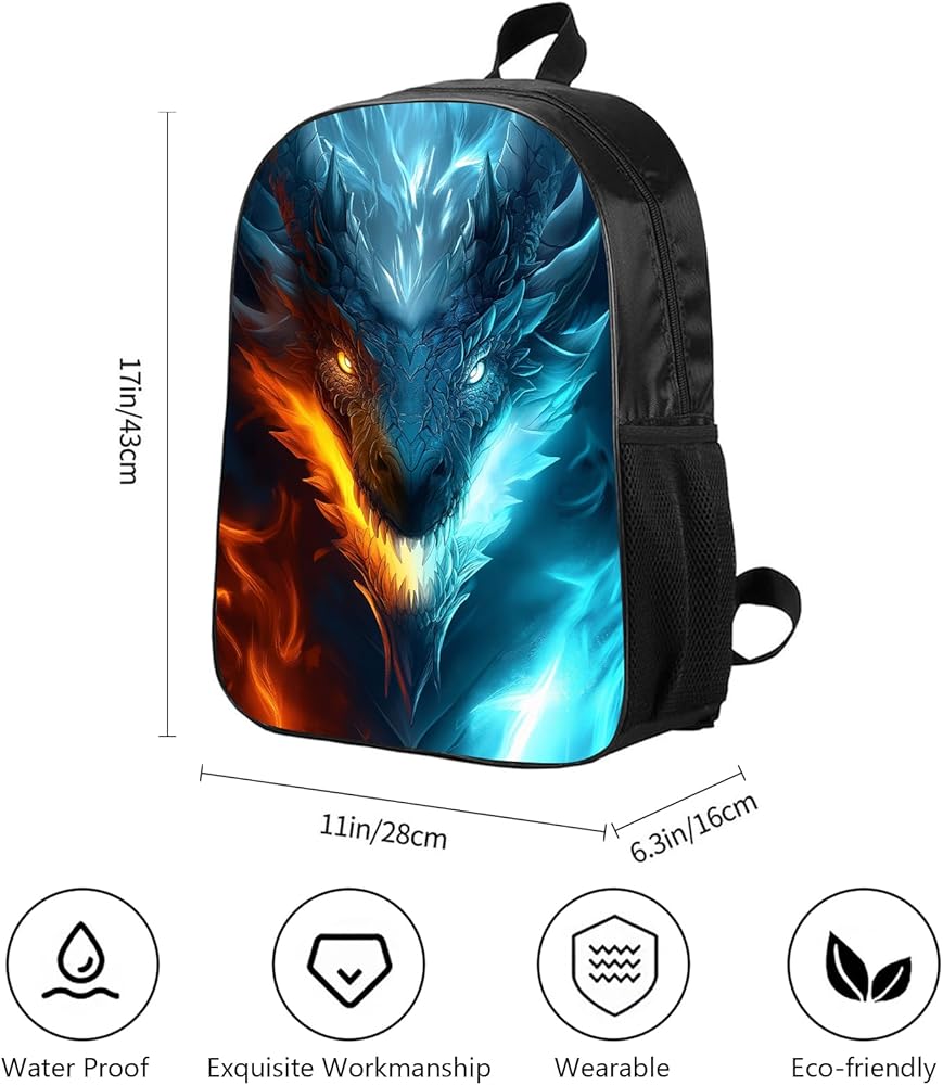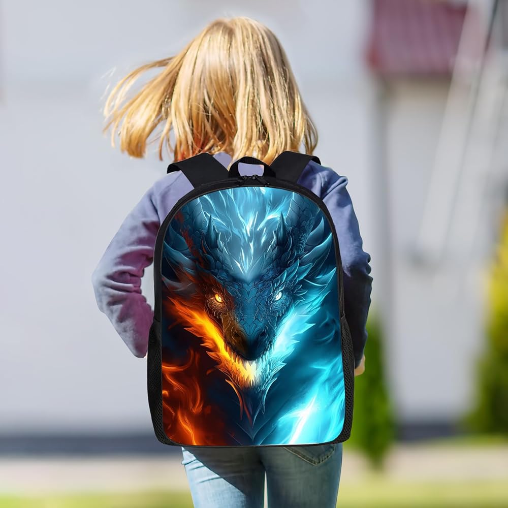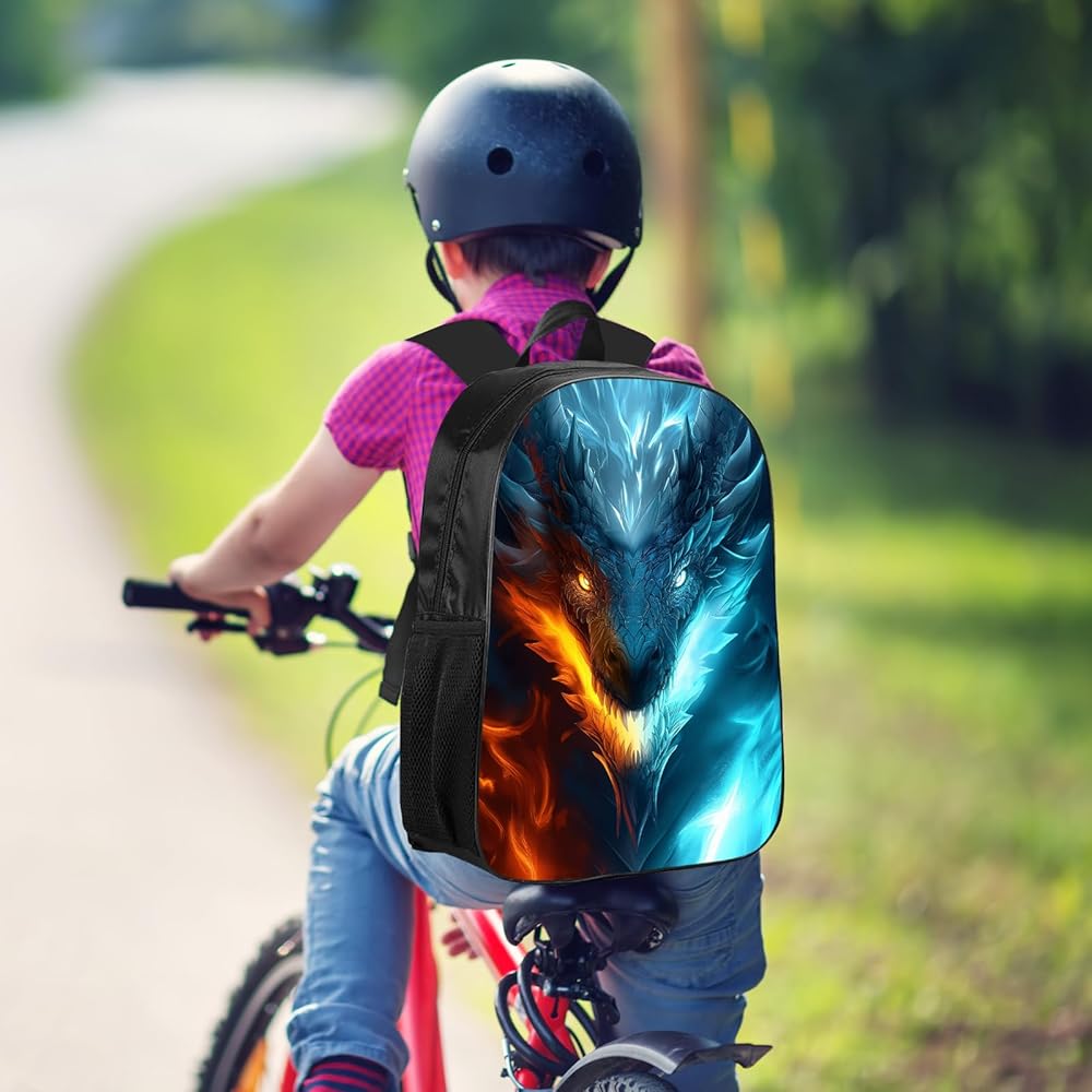 حقيبة ظهر Dragon Kids حقيبة ظهر على شكل تنين الجليد والنار للأولاد والبنات، مقاومة للماء لطلاب المدارس الابتدائية والمتوسطة والثانوية أثناء السفر، حقيبة ظهر للكمبيوتر المحمول، حقيبة ظهر على شكل حيوان وحش، 17 بوصة