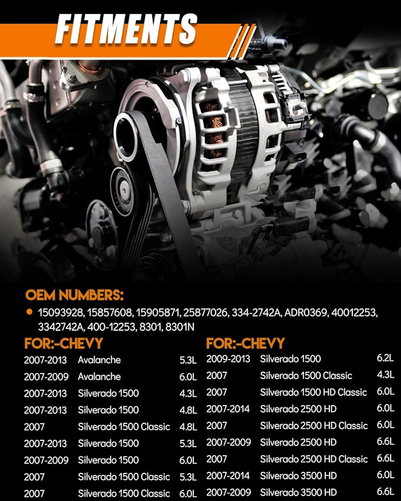 أرقام OEM: 15093928، 15857608، 15905871، 25877026، 334-2742A، ADR0369، 40012253، 3342742A، 400-12253، 8301، 8301N. بكرة 12 فولت 160 أمبير CW ذات 6 أخدود، اختر المولدات المناسبة، واجعل تحويل الطاقة الكهربائية أكثر اكتمالًا، وتأكد من إمداد الطاقة المستقر في السيارة