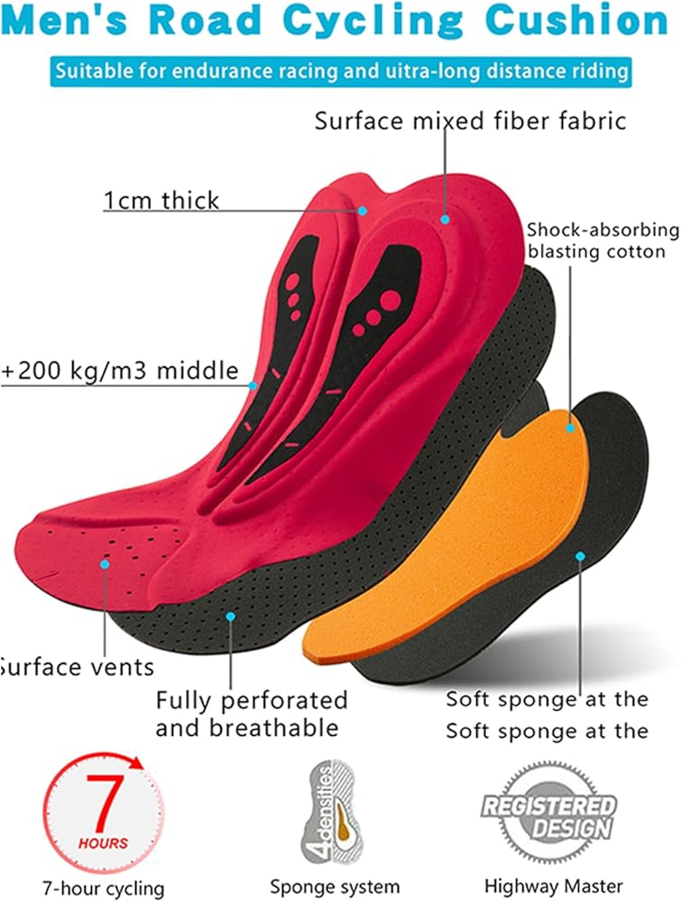 【شورت مبطن لركوب الدراجات 4D للرجال】: تتكون البطانة الموجودة في شورت ركوب الدراجات الرجالي هذا من أربع طبقات من الإسفنج الممتص للصدمات مغلفة ببطانة مقعد إسفنجية عالية الكثافة. توفر هذه البطانة الكبيرة والسميكة الراحة والحماية عالية المستوى ضد الإصابات حتى أثناء الرحلات الطويلة. يعزز السطح المثقوب التهوية مع الحفاظ على الخفة.