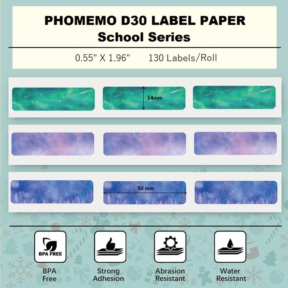 √ ما تحصل عليه: 3 لفات من ورق الملصقات مقاس 14 مم × 50 مم. 0.55 بوصة × 1.96 بوصة (130 ملصقًا لكل لفة)، مطبوعات بالأبيض والأسود. إنه مقاوم للماء والتآكل وخالي من مادة BPA