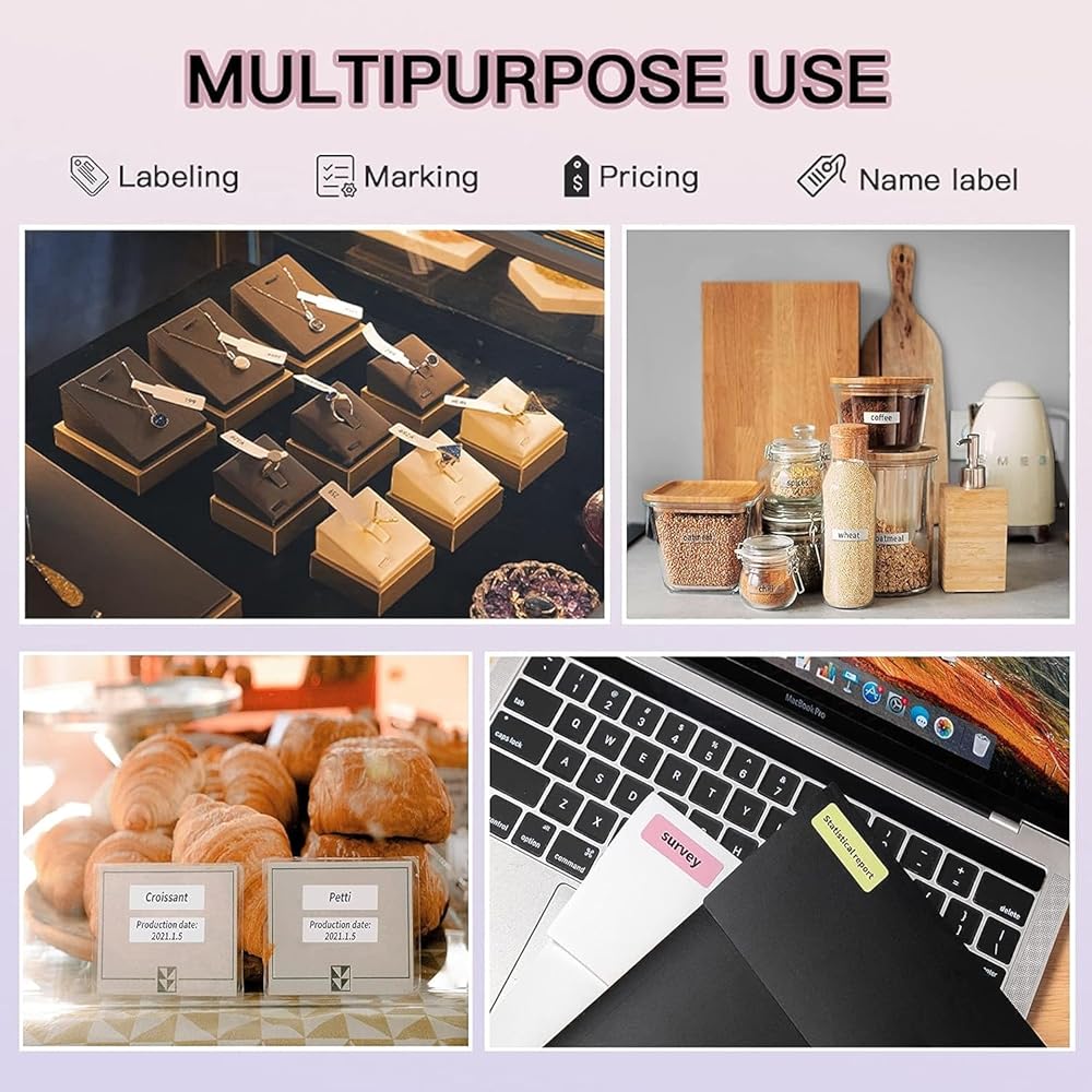 √ متعدد الأغراض: مثالي للمنزل/المكتب/التنظيم والمزيد من التطبيقات. إنه مناسب لوضع العلامات والتخزين ووضع العلامات والمزيد من المهام التي لا نهاية لها في الحياة اليومية. حتى أنه يعمل بشكل جيد في درجات الحرارة المنخفضة. إنه مقاوم للماء والتآكل وخالي من مادة BPA