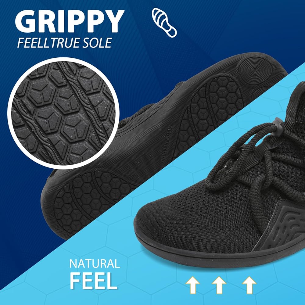 • غير قابل للانزلاق: نعل مطاطي مرن وخفيف الوزن ومقاوم للانزلاق ولا يترك علامات لشعور استثنائي حافي القدمين وحرية الحركة. توفر الأحذية الرياضية حافية القدم قبضة جيدة في جميع الظروف الجوية والأرضية.
