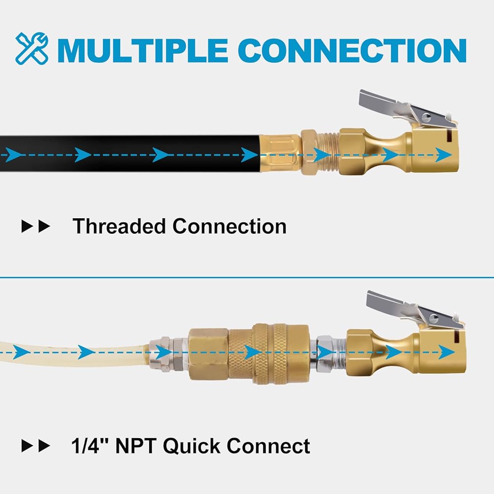 • الميزات--- قفل ظرف الهواء متوافق مع صمامات شريدر. ظرف الهواء للإطارات مزود بخيط NPT أنثى مقاس ¼ بوصة، وهو مناسب لمعظم مضخات النفخ ومنفاخ ضغط الإطارات.