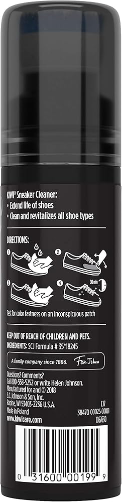 KIWI Sneaker Cleaner is Step 1 of the 3-Step KIWI Sneaker Care system. KIWI knows your sneakers are your pride, and you love taking care of them. KIWI Sneaker Cleaner has a powerful formula and sponge-top brush that are perfect shoe cleaner tools for removing marks, dirt, salt and stains. Use it not just for sneaker cleaning but also to clean white shoes, suede shoes and tennis shoes. Get shoes looking like new again and get going.