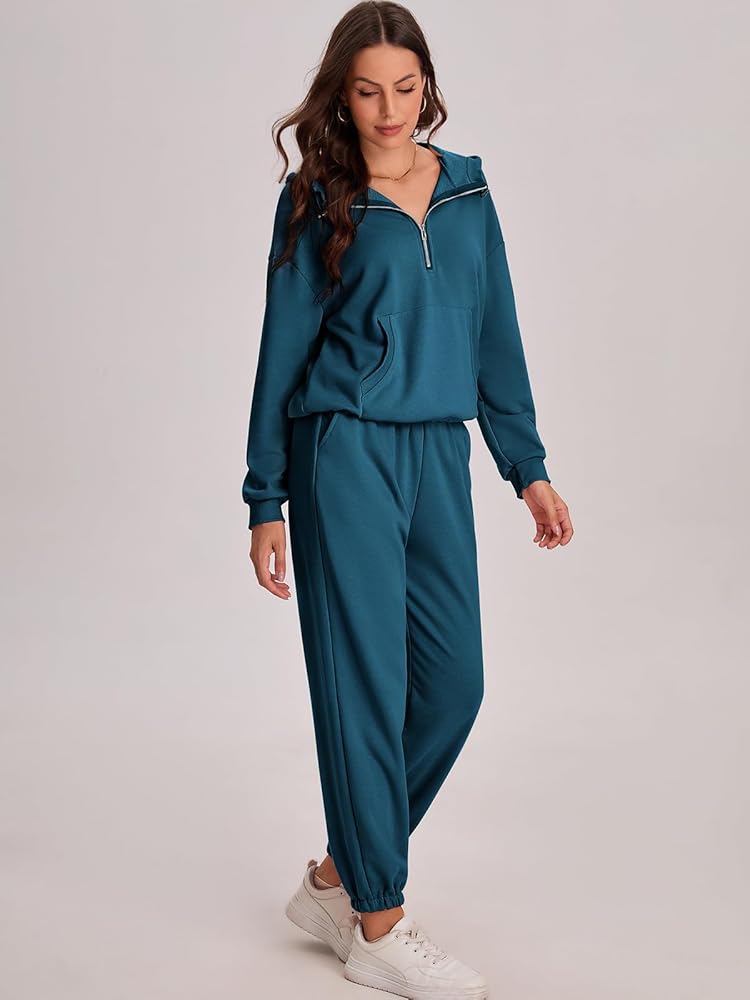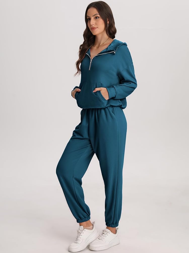 • الميزة - المجموعات النسائية المكونة من قطعتين بتصميم بسيط هي مجموعة من عناصر الموضة المتنوعة. ملابس سفر للنساء/بلوفر نسائي بنصف سحاب/بنطلون رياضي بخصر مطاطي/أزياء أزياء خريف وشتاء