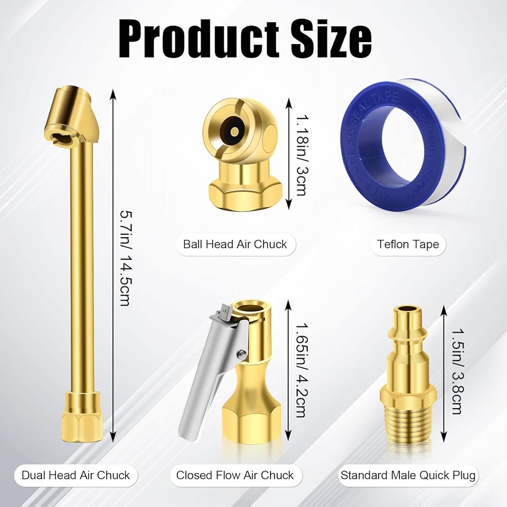 ❤تشمل العبوة: - سوف تحصل على 6 قطع من مجموعة ظرف الهواء، 1 ظرف هواء مزدوج الرأس، 1 ظرف إطار كروي مغلق، 1 قابس سريع قياسي للذكور، 1 شريط تيفلون، و2 ظرف هواء مغلق للتدفق. إنه خيار مثالي للاستخدام المنزلي والتجاري.
