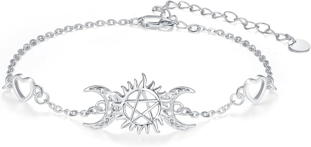 symbolic elements like pentacles, stars, or gemstones. The Triple Moon Goddess bracelet is worn as a talisman to