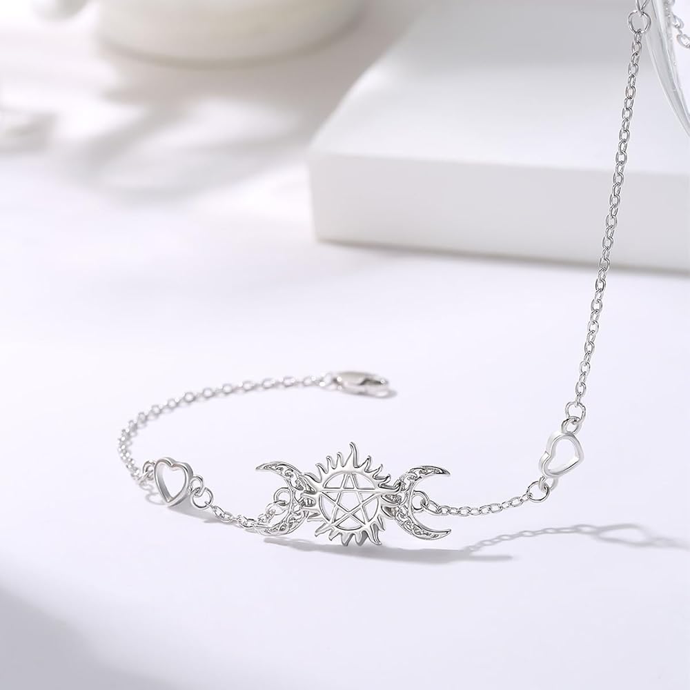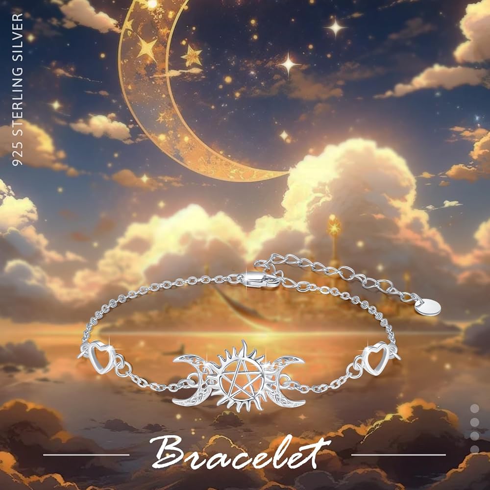 The Triple Moon Goddess bracelet is a powerful symbol in Wiccan and Pagan beliefs, representing the three phases of the