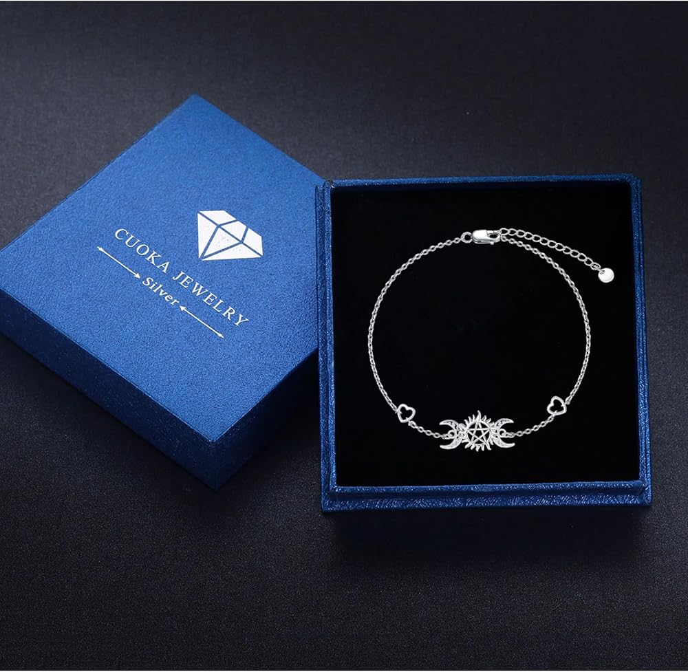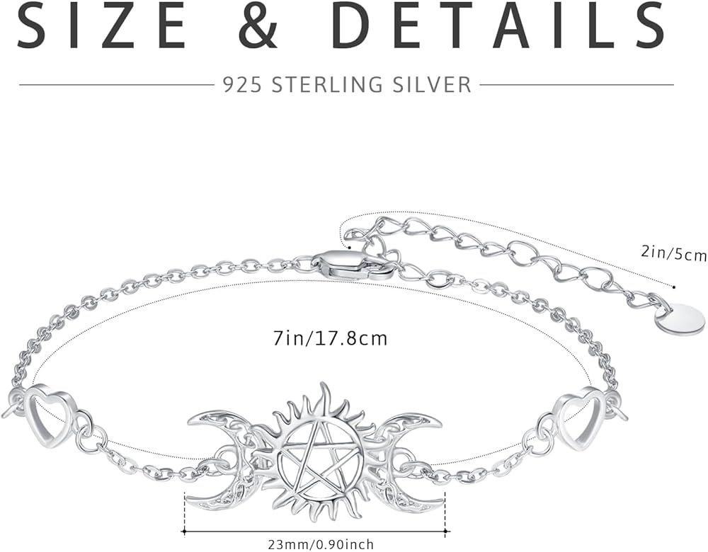 سوار آلهة القمر الثلاثي - تصميم سماوي مع مراحل قمرية - حجم قابل للتعديل - هدية مثالية لها - مجوهرات من الفضة الإسترلينية 925 للنساء عشاق القمر