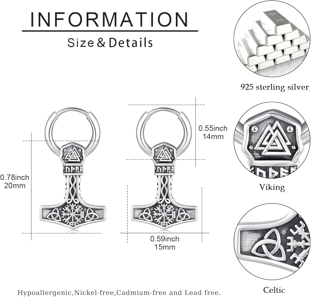 -Measurement:Thor Hammer Earring: 15*34mm/0.59*1.34 inches.
