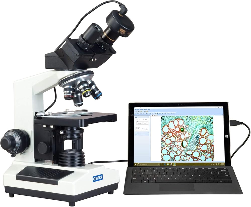This is a laboratory binocular compound microscope with a 9.0MP USB digital imaging system. It offers eight levels of magnification from 40X to 2000X. The 3488x2616 pixels USB digital imaging system captures still microscope images and live video on computer. The included software compatible with Windows XP/Vista/7/8/10 can also be used to make measurements. All lenses are made of high quality optical glass. The high resolution image in the field of view is crystal clear and will satisfy the demands of professionals. This binocular microscopy is good for labs, clinics, universities, and high schools.