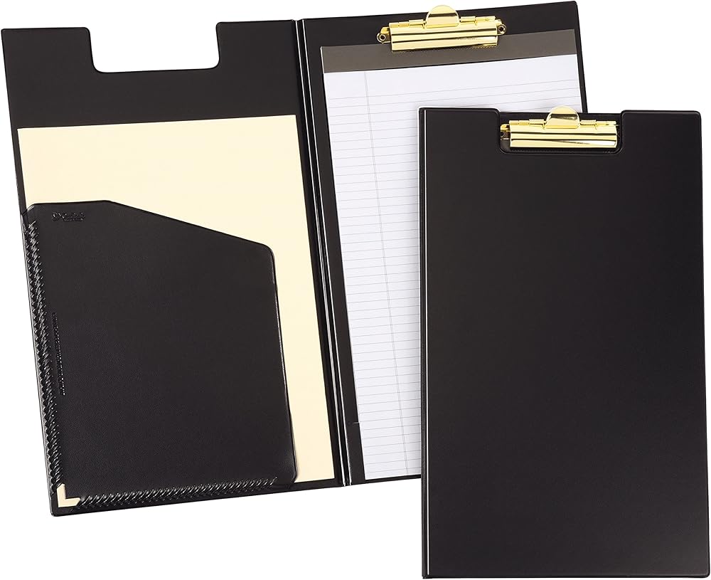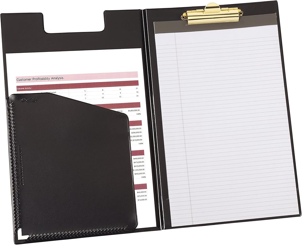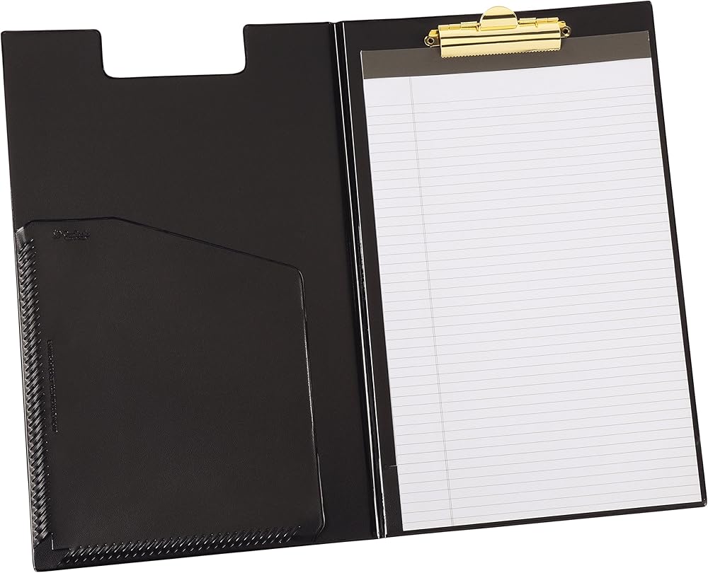 This legal-size Cardinal Clip Folder is made of sturdy sealed material and features a top center brass finish clip to securely hold contents. The notched cover stays flat when closed and the inside front cover includes a patented Expand-A-Pocket that holds a generous amount of papers. To round out the usefulness of this folder, a ruled writing pad is included to suit your note taking needs. You can count on Cardinal Brands high quality presentation products for trusted, economical solutions for your workplace and workday!
