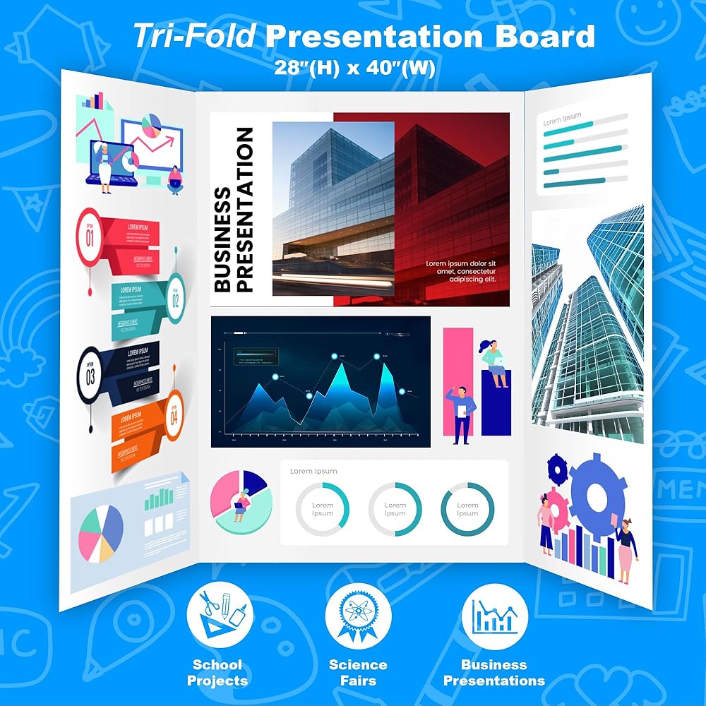 Discover the versatility of our trifold poster boards, available in convenient sizes like 28x40 and 36x48 inches, perfect for showcasing your scientific research or artistic endeavors. Need a sturdy backdrop for your photo display or presentation? Our durable foam boards provide stability and support, ensuring your work stands out with clarity and precision.
