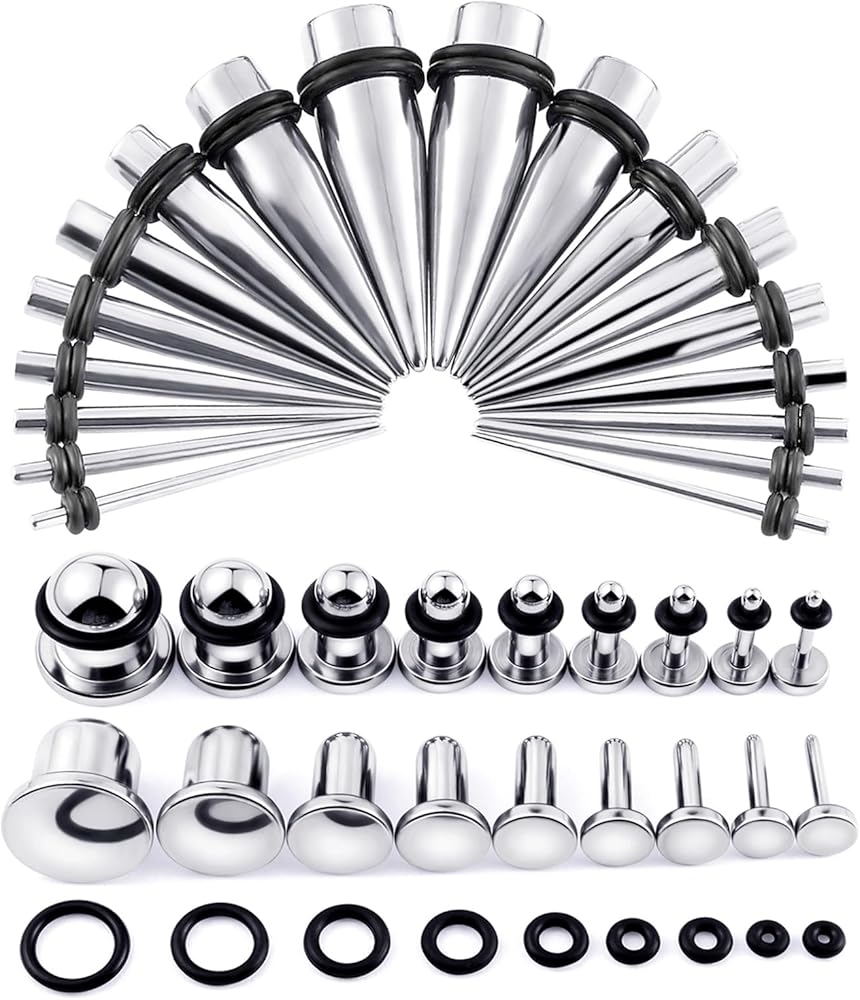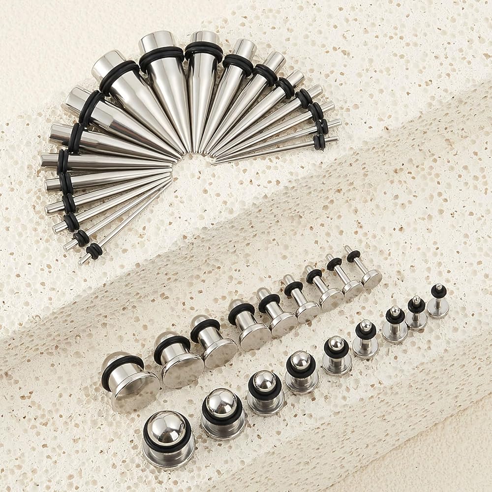Longbeauty 14G-00G 36pcs الأذن مقاييس تمتد عدة التناقص التدريجي الفولاذ الجراحية للأذنين قياس بداية مجموعات واحدة مسطحة أعلى مقاييس المقابس للنساء الرجال