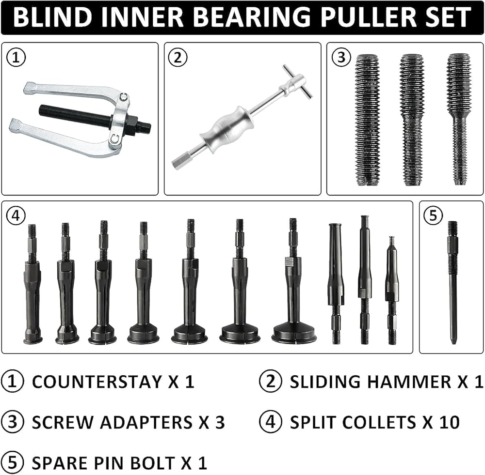 8MILELAKE 16 قطعة مجموعة مجتذب المحمل الداخلي للطيار الأعمى، مجموعة أدوات استخراج محامل الختم والسباق