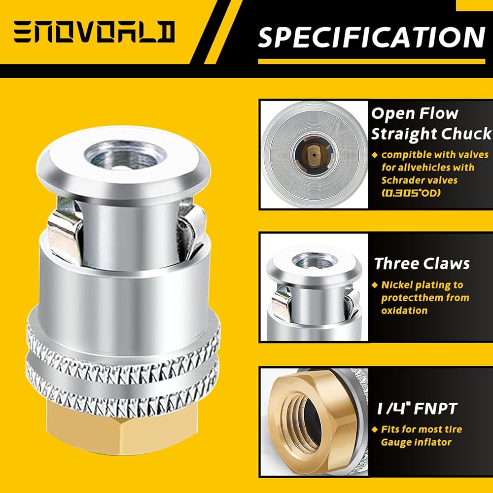 【مشبك منفاخ الإطارات المستخدم على نطاق واسع】يتوافق قفل ظرف الهواء مع F-NPT مقاس 1/4 بوصة مع معظم منفاخ الإطارات ومقاييس ضغط العجلات وملحقات ضاغط الهواء. يمكن استخدامه على نطاق واسع ومريح لنفخ صمام شريدر لمعظم الدراجات والدراجات النارية والسيارات والحافلات والشاحنات وما إلى ذلك.