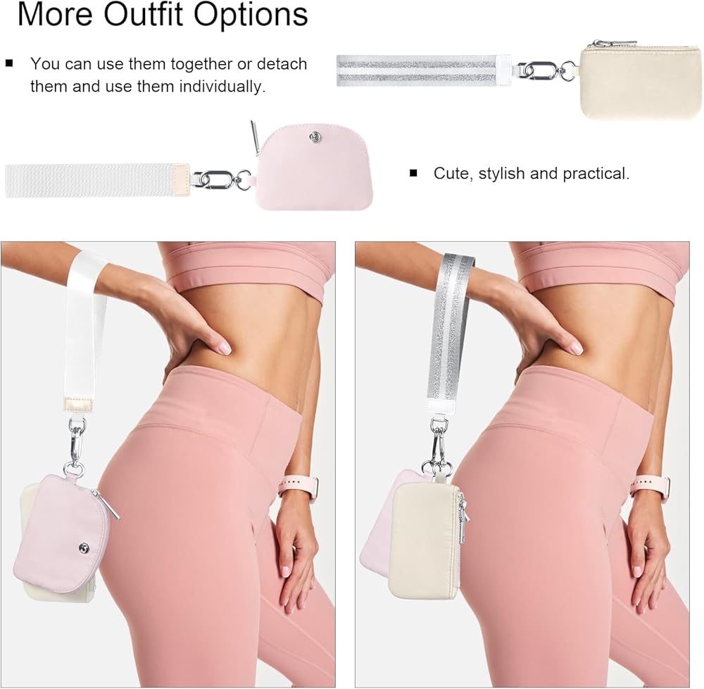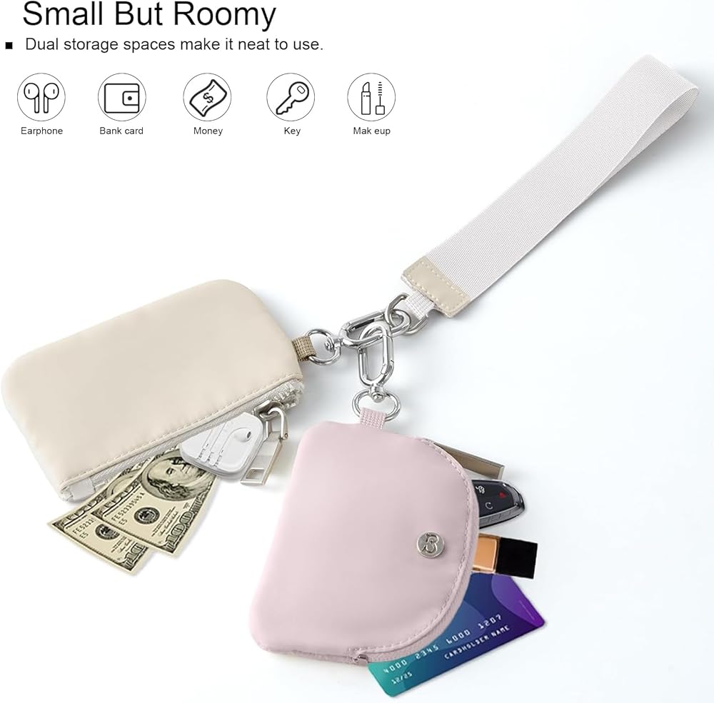 تصميم عملي: محافظ المعصم للنساء واسعة للمنتجات الصغيرة مثل العملات المعدنية وبطاقات الهوية وبطاقات الخصم/الائتمان ومفاتيح السيارة وقلم تحديد الشفاه وأحمر الشفاه وقصافة الأظافر وبطاقات العمل وعصا الشفاه وما إلى ذلك! مناسبة للاستخدام اليومي. تصميم بدون استخدام اليدين يتيح لك حمل ضرورياتك أثناء القيام بالأنشطة الأخرى