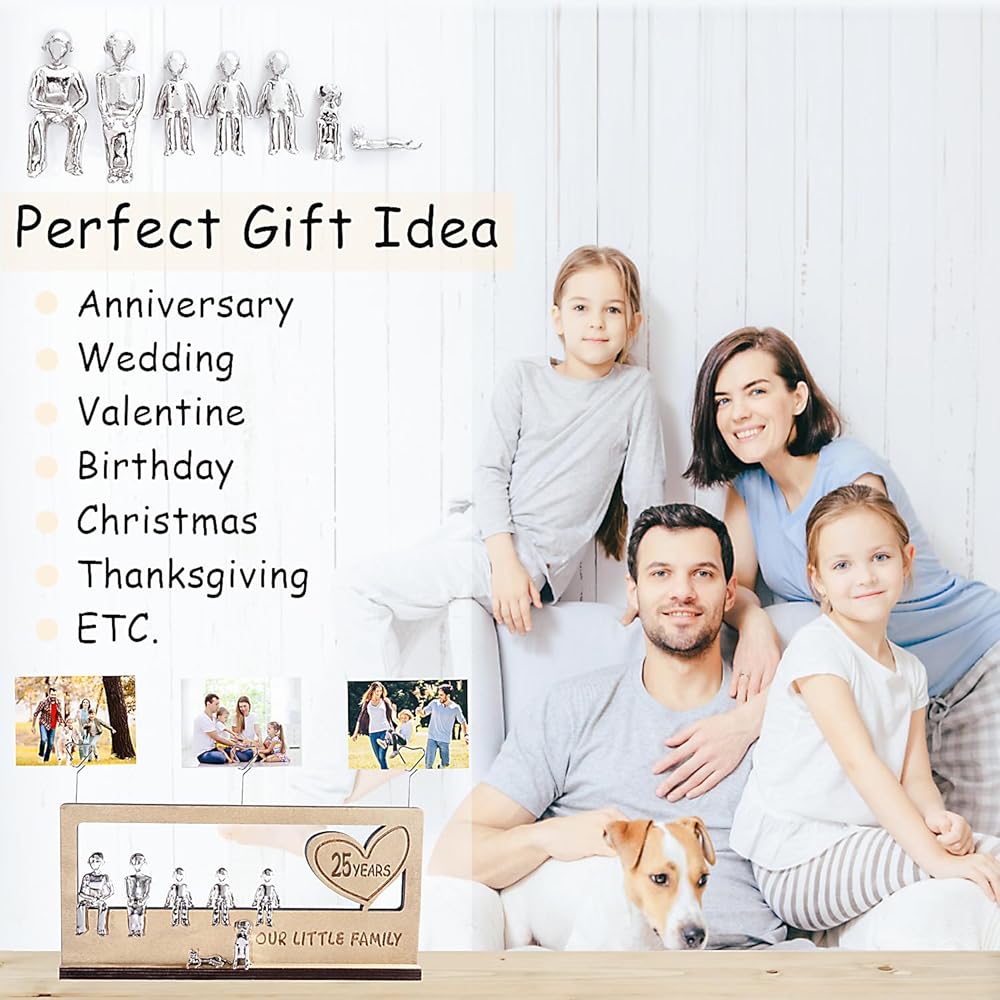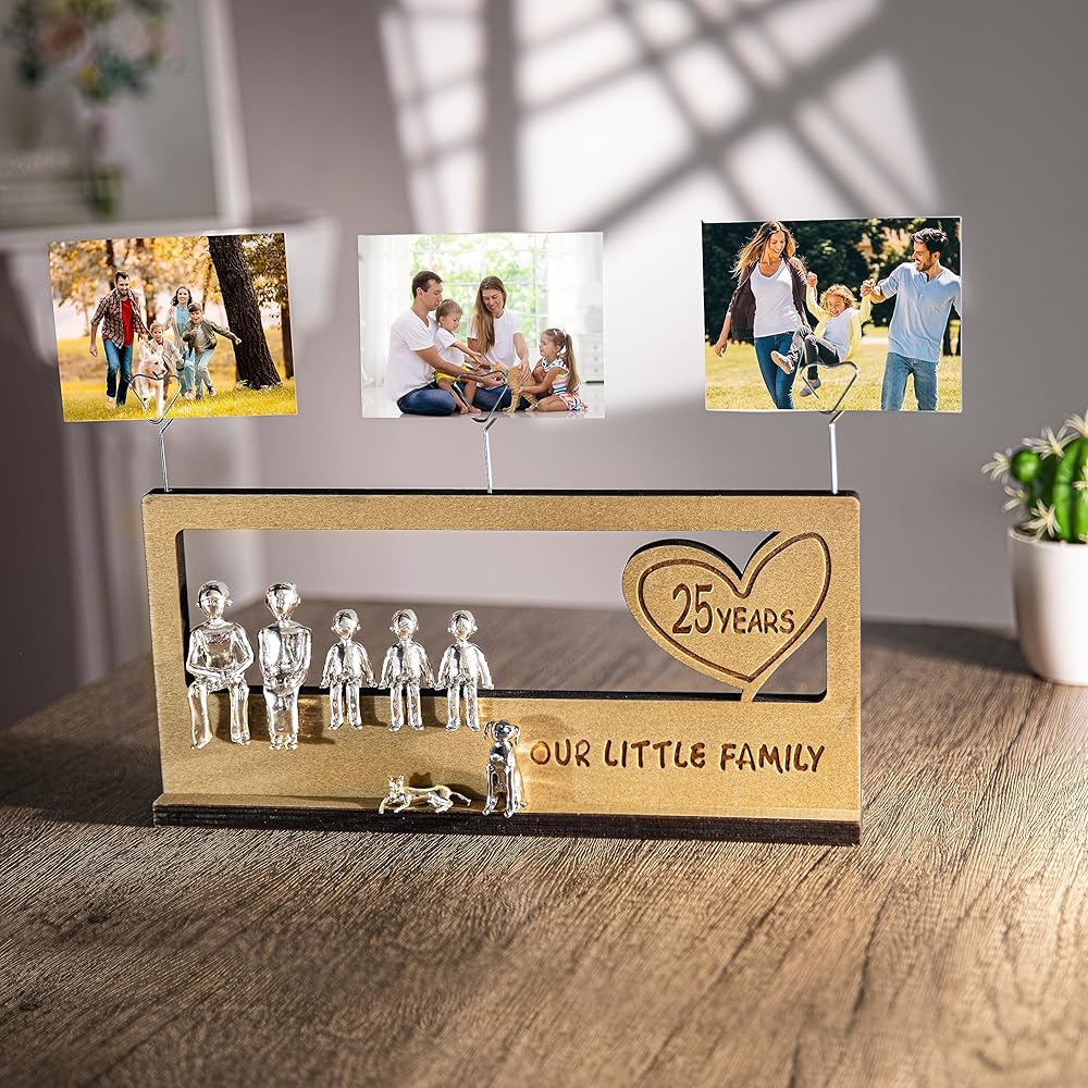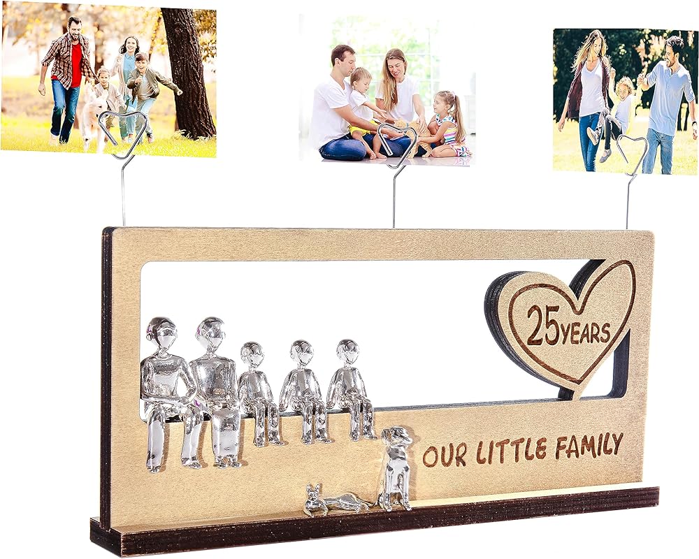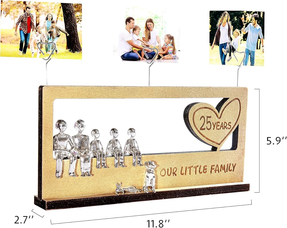 • PREFECT SIZE - Our little family best 25 year anniversary gifts frame measures about 11.8 x5.9 inch & Adult Height 3 inch Child Height 2.3 inch Dog Height 1.7 inch Cat width 1.7 inch. The perfect size allows you to clearly show off your lovely 25th anniversary