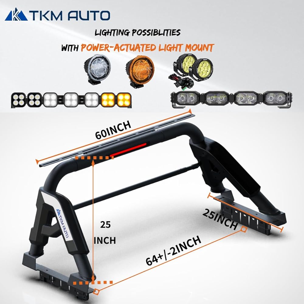 شريط رول رياضي أسود SRBL012 متوافق مع الشاحنات كاملة الحجم F150 | F250 | F350 | سيلفرادو سييرا 1500 2500 3500HD | رام 1500 2500 3500 | تندرا | تيتان