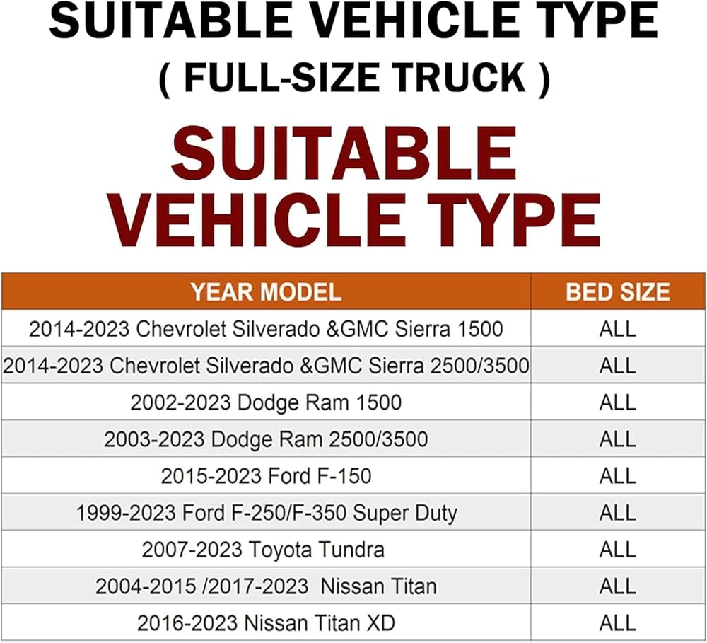 - متوافق مع الشاحنات كاملة الحجم F150 | F250 | F350 | سيلفرادو سييرا 1500 2500 3500HD | رام 1500 2500 3500 | تندرا | تيتان