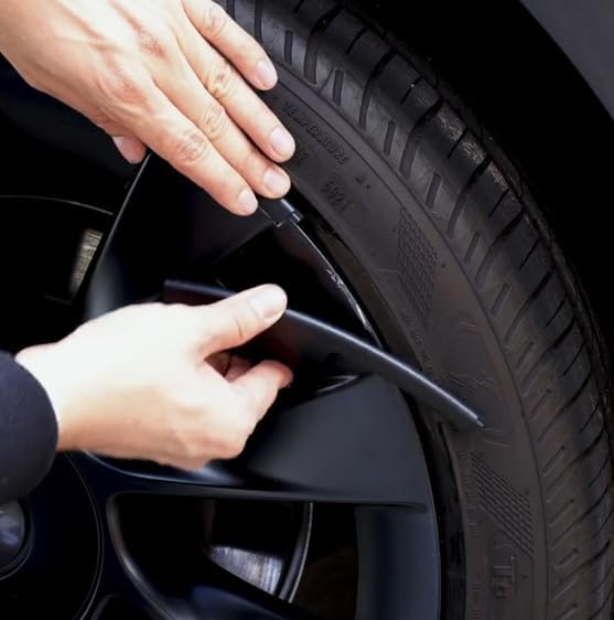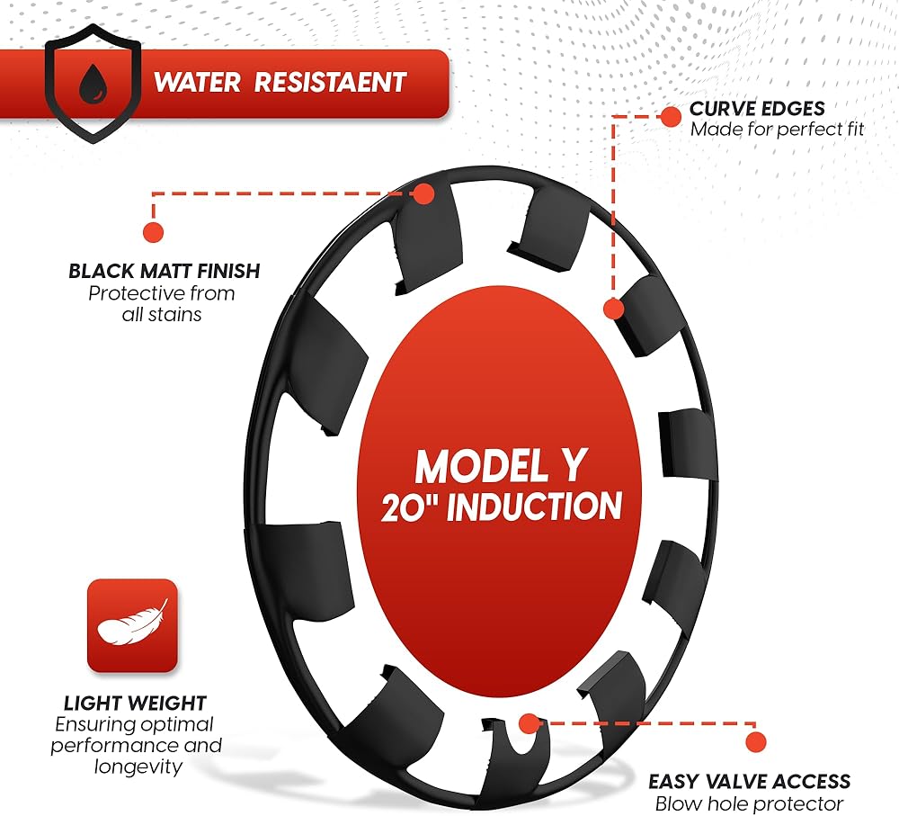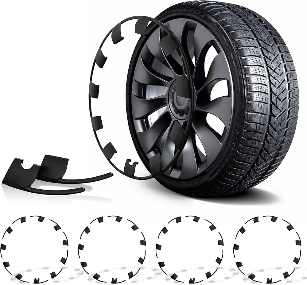 RimTek Tesla Model Y 21 بوصة واقي حافة يغطي العجلة بأكملها - حماية من الخدش - ملحقات خارجية سوداء غير لامعة لتتناسب مع عجلة OEM الأصلية - مجموعة من 4 - (21 بوصة Uberturbine)