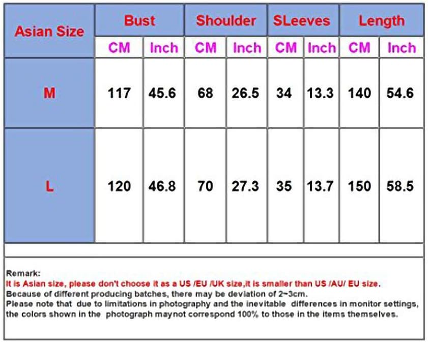 Size: L. Be suitable for Clothing Length 150cm/58.5inch,Shoulder Length70cm/27.3inch. Chest circumference 120cm/46.8inch, Sleeve length 48 cm/18.7inch. If you need other size, please contact us and told the size you need after place an order.