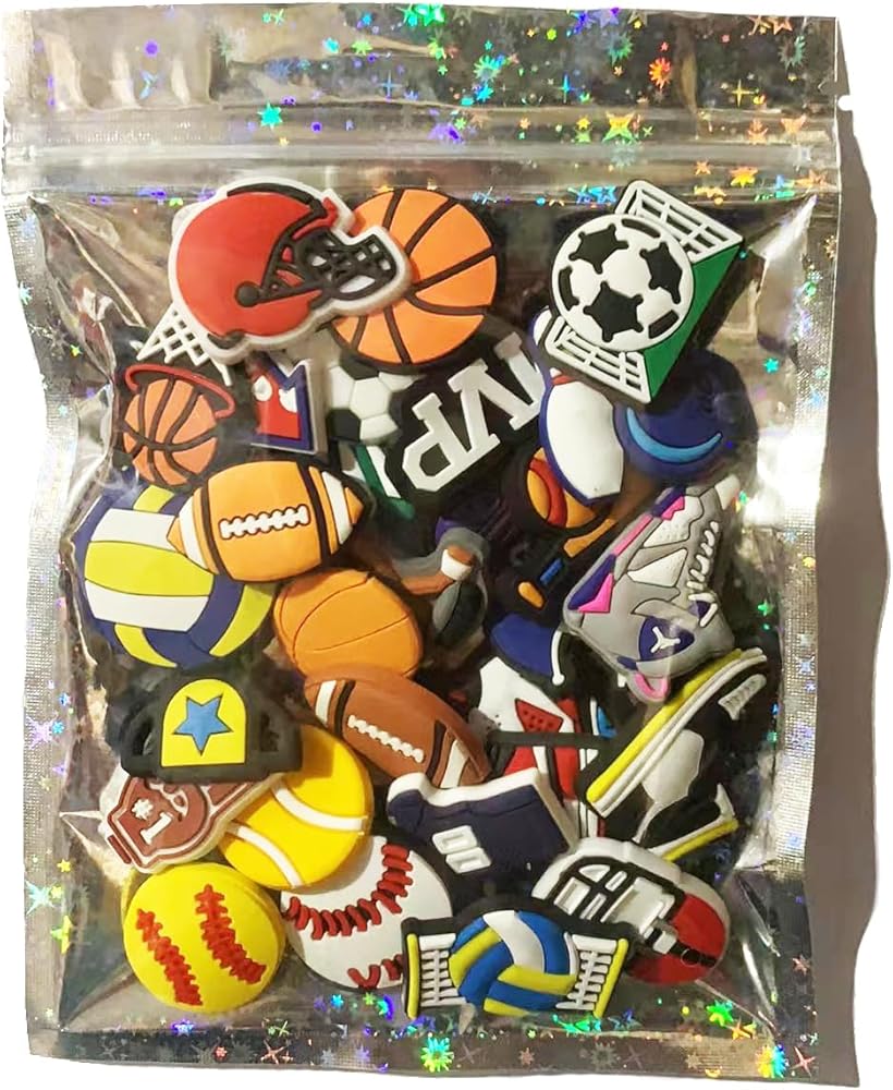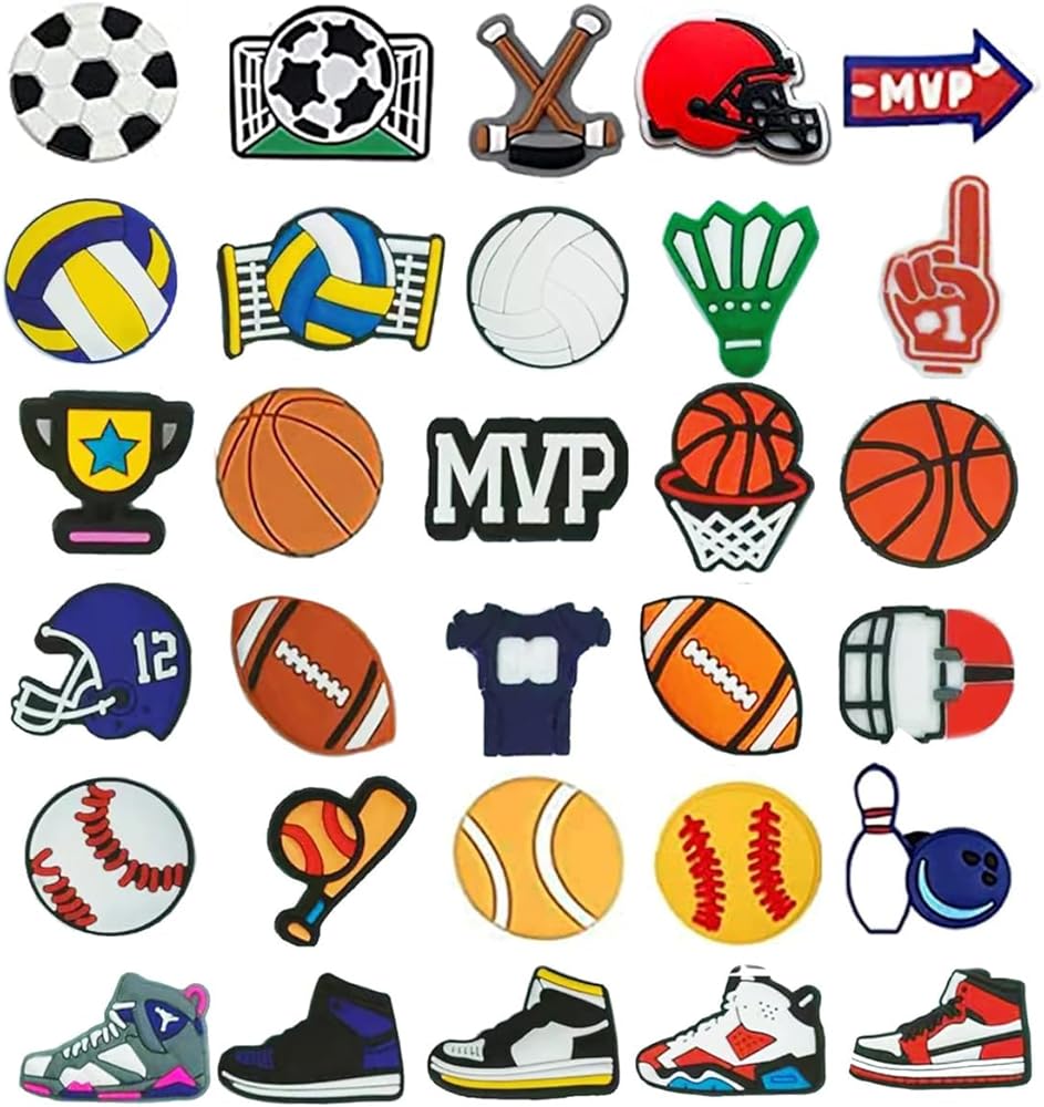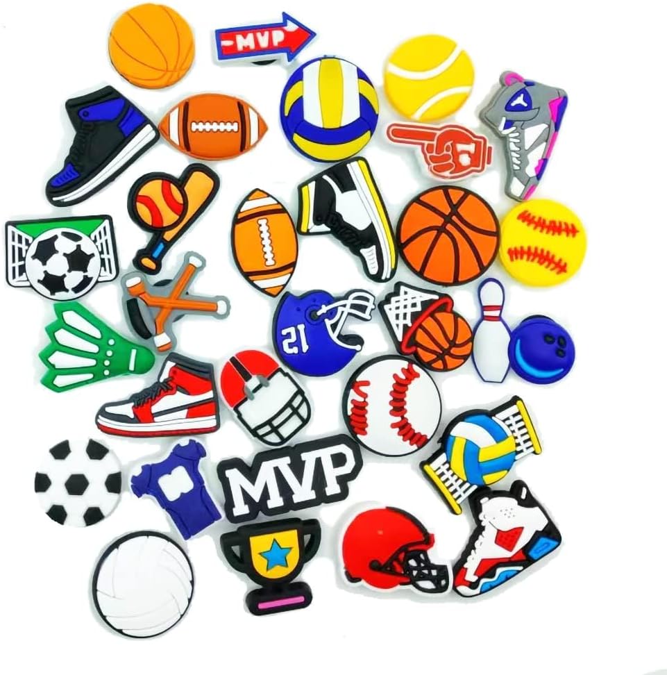 Variety of Unique Styles: Get 30 charm sports sets featuring basketball, football, soccer, volleyball, softball, baseball themes. The most creative shoe decoration charm set, make your shoes more shiny, stylish, lively and interesting.