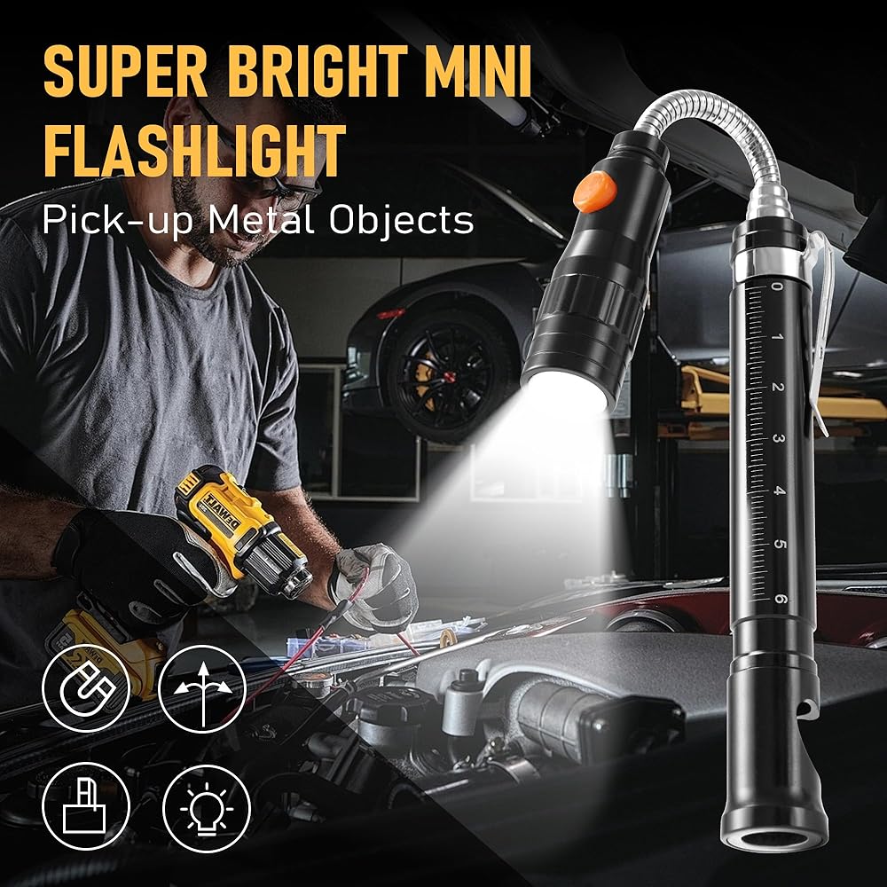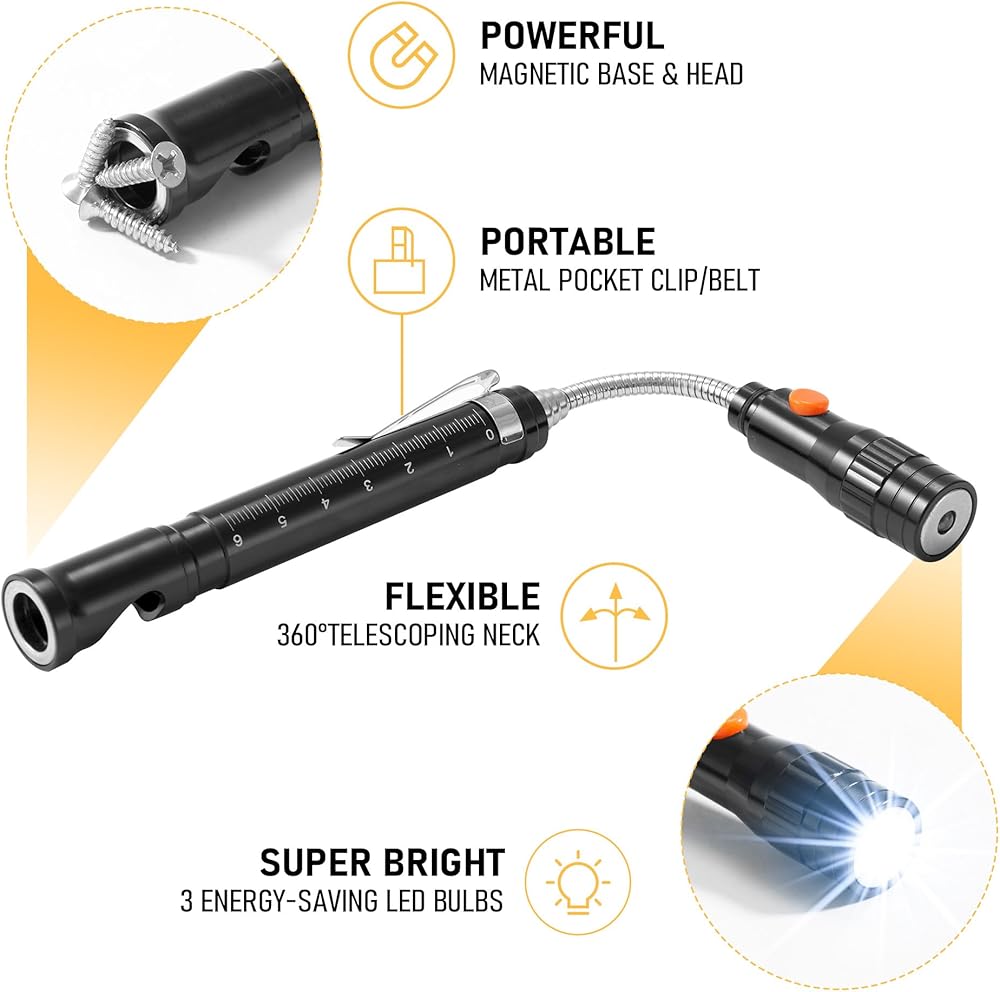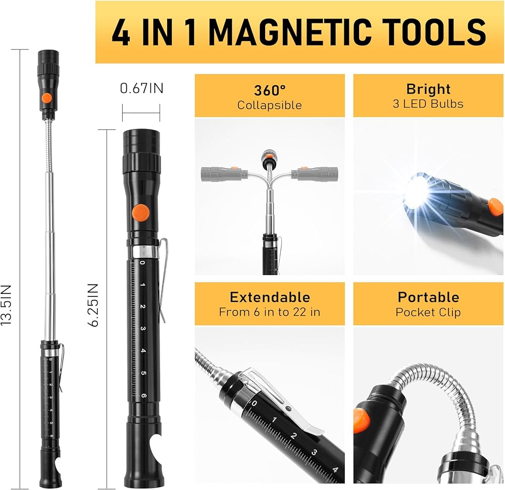Multi-Purpose Tool: Extendable magnetic flashlight with telescoping magnet pickup tool for retrieving dropped screws, nails, or metal objects in hard-to-reach areas