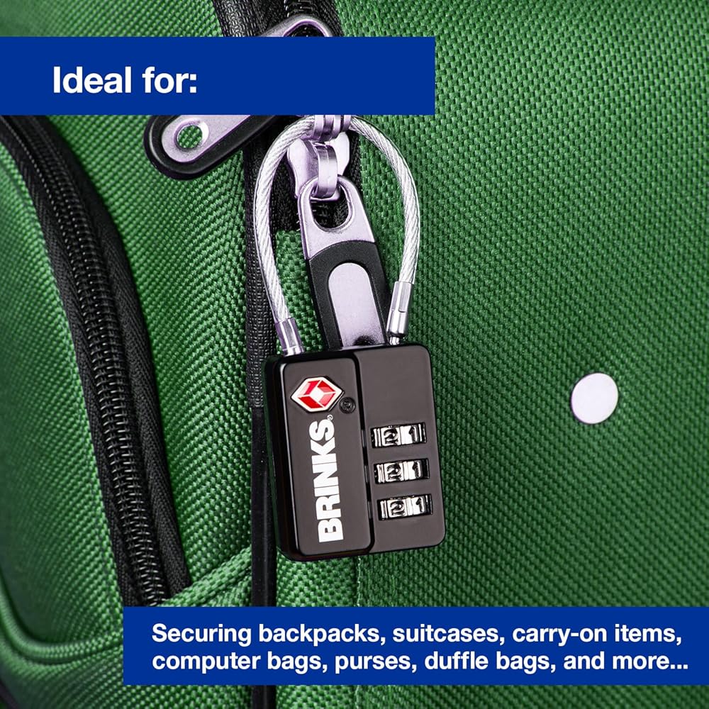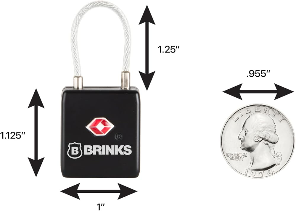 برينكس - قفل سفر للأمتعة معتمد من إدارة أمن المواصلات الأمريكية مقاس 1-1/8 بوصة - قفل صغير للأمتعة وحقيبة السفر مع هيكل من الزنك وقيد كابل مرن