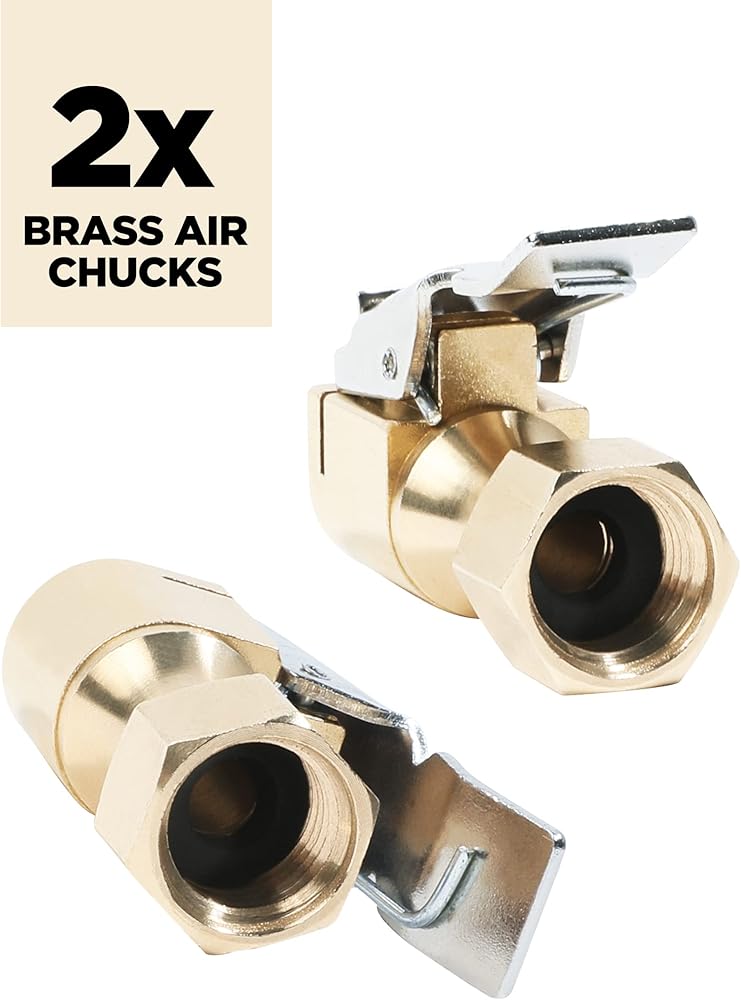 [تشمل العبوة] تحتوي العبوة على اثنين من خراطيش الإطارات ذات تصنيف 250 رطل لكل بوصة مربعة، والتي تنطبق على الاستخدام الشاق لمعظم منفاخ إطارات السيارات ومقاييس الضغط. متوافق مع صمامات شريدر.