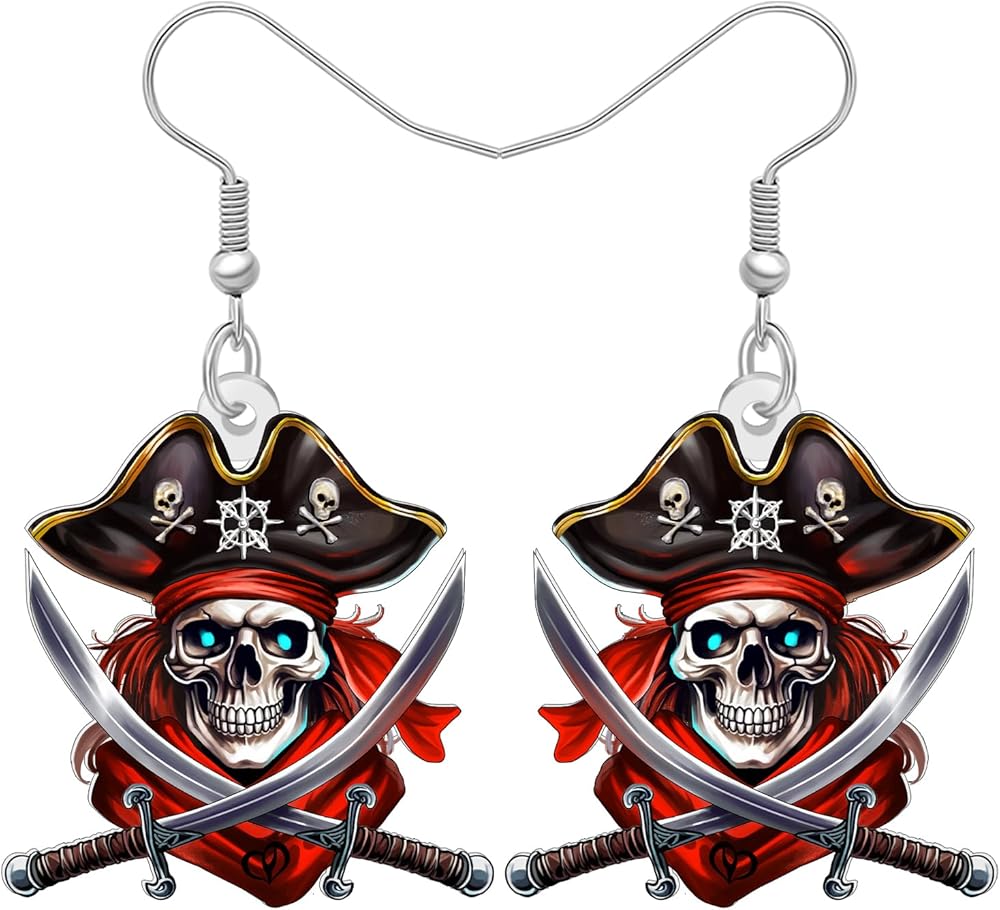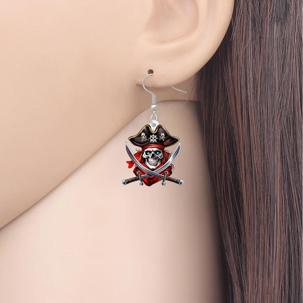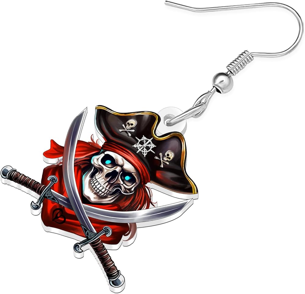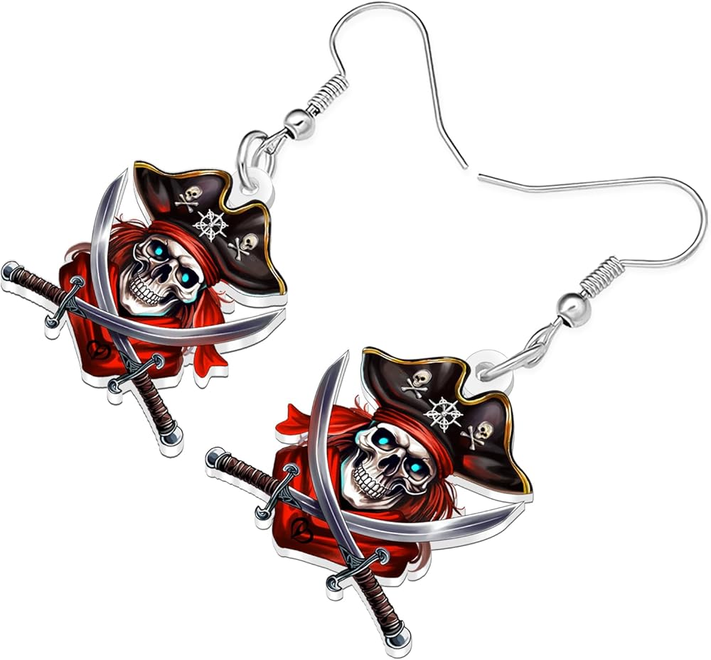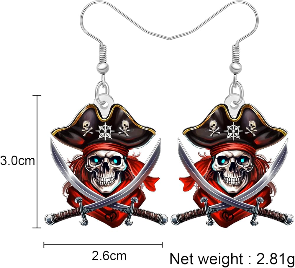 Acrylic and Pattern: Cute Cartoon Pirate Skull Shaped Dangle Earrings