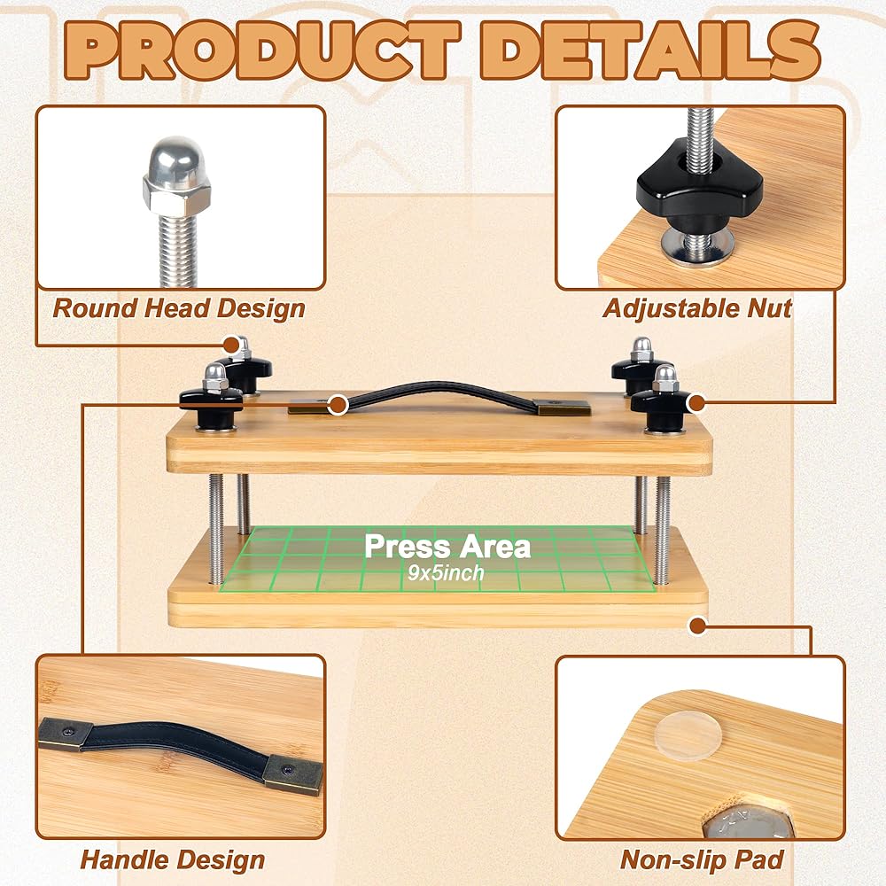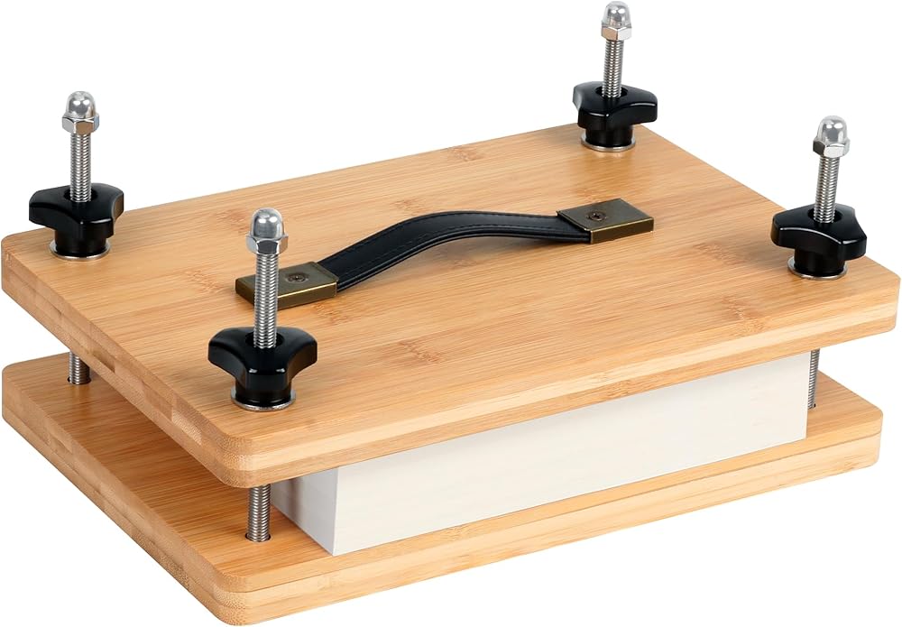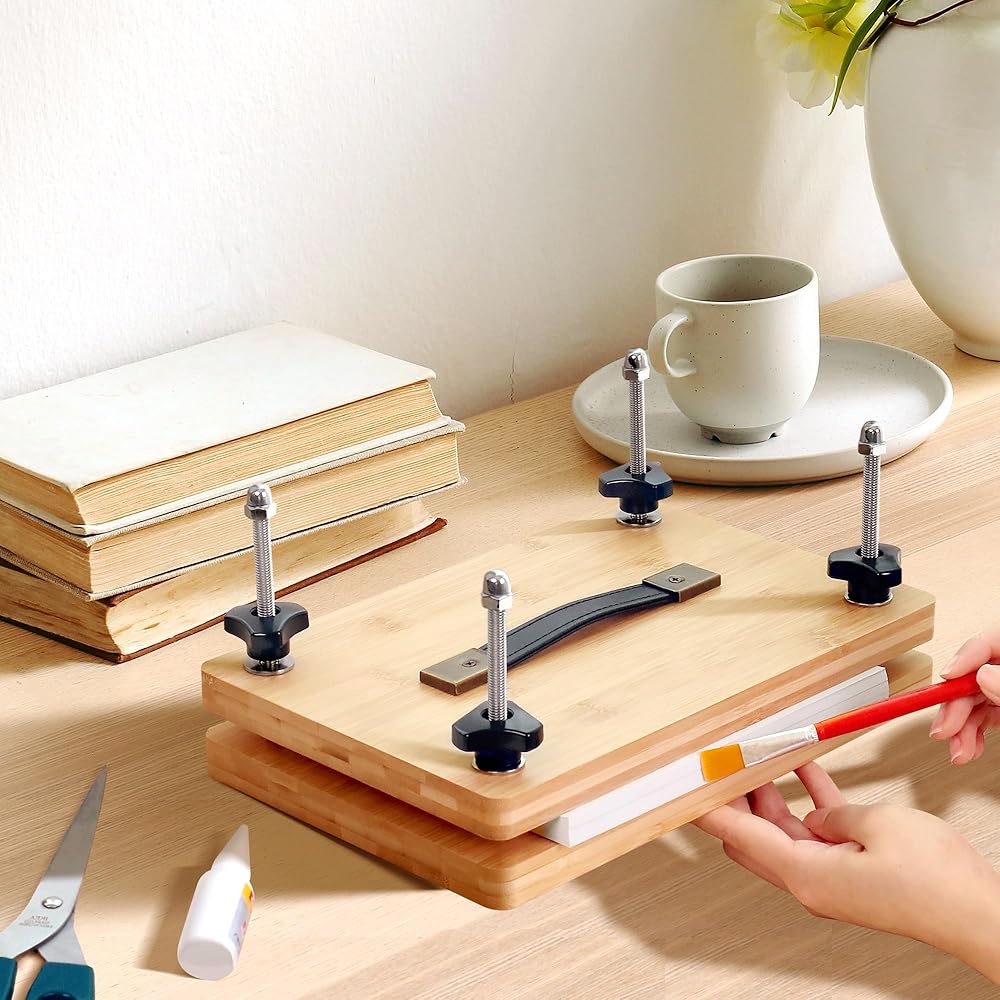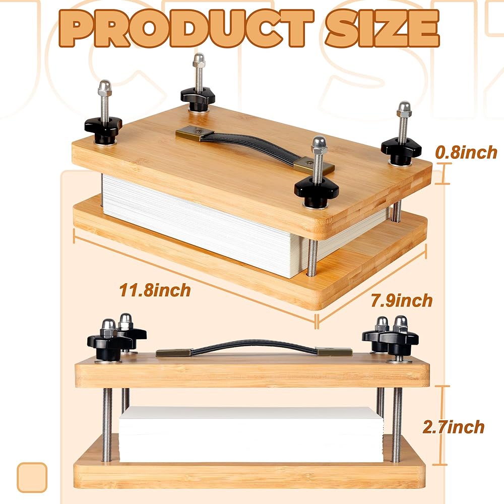 تجليد الكتب بالضغط مقاس 11.8 × 7.9 بوصة، مكبس تجليد الكتب، مكبس الورق، مجموعة أدوات آلة تجليد الكتب المصنوعة من الخيزران مع مقبض محمول وحصيرة مضادة للانزلاق، مجموعة ضغط الزهور للأطفال والكبار