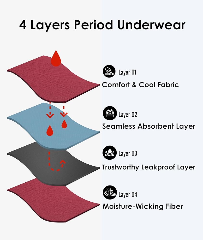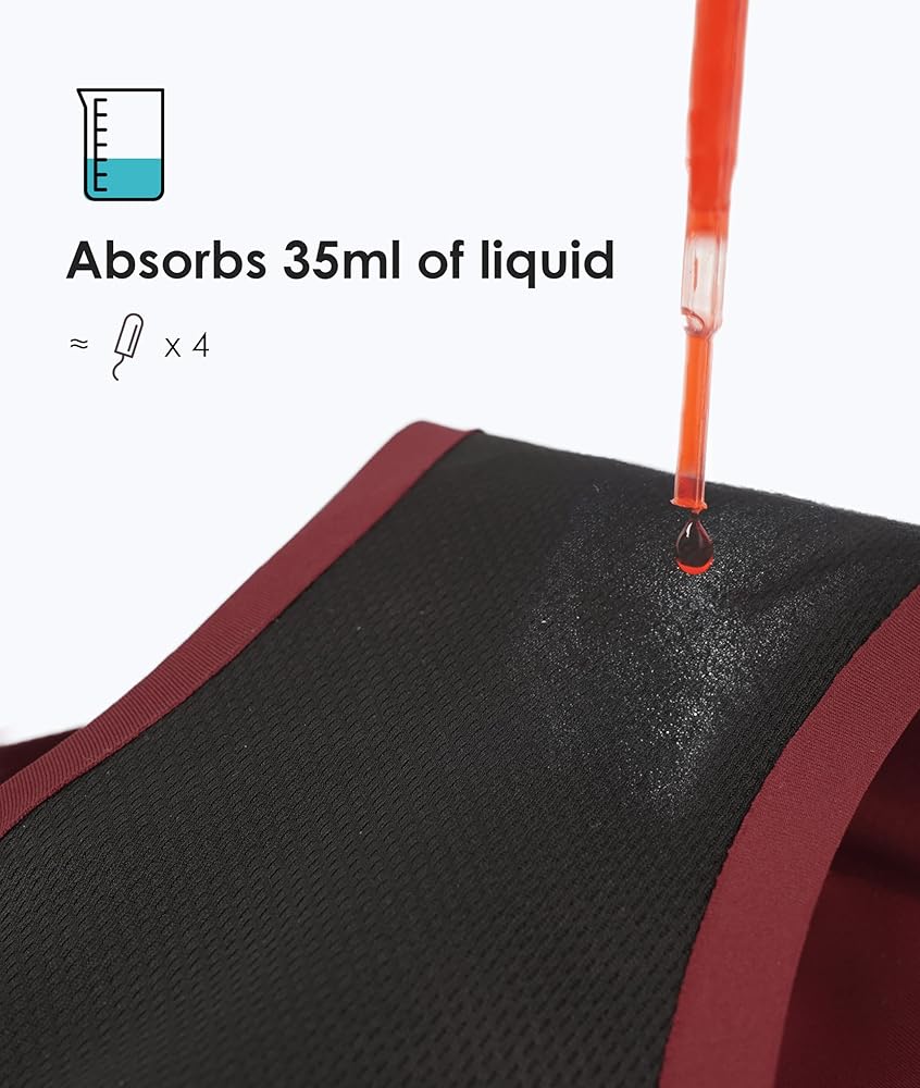 امتصاص موثوق - يمكن للبطانة الماصة الخاصة بنا أن تحمل ما يصل إلى 35 مل من السوائل، بينما تمنع الطبقة المقاومة للتسرب أي سائل ممتص من التسرب من سروالك أو ملابسك الداخلية، مما يوفر لك حماية موثوقة بتصميم جيد التنظيم.