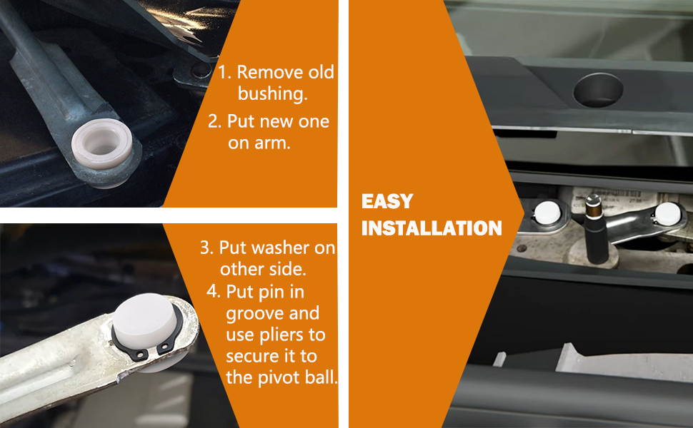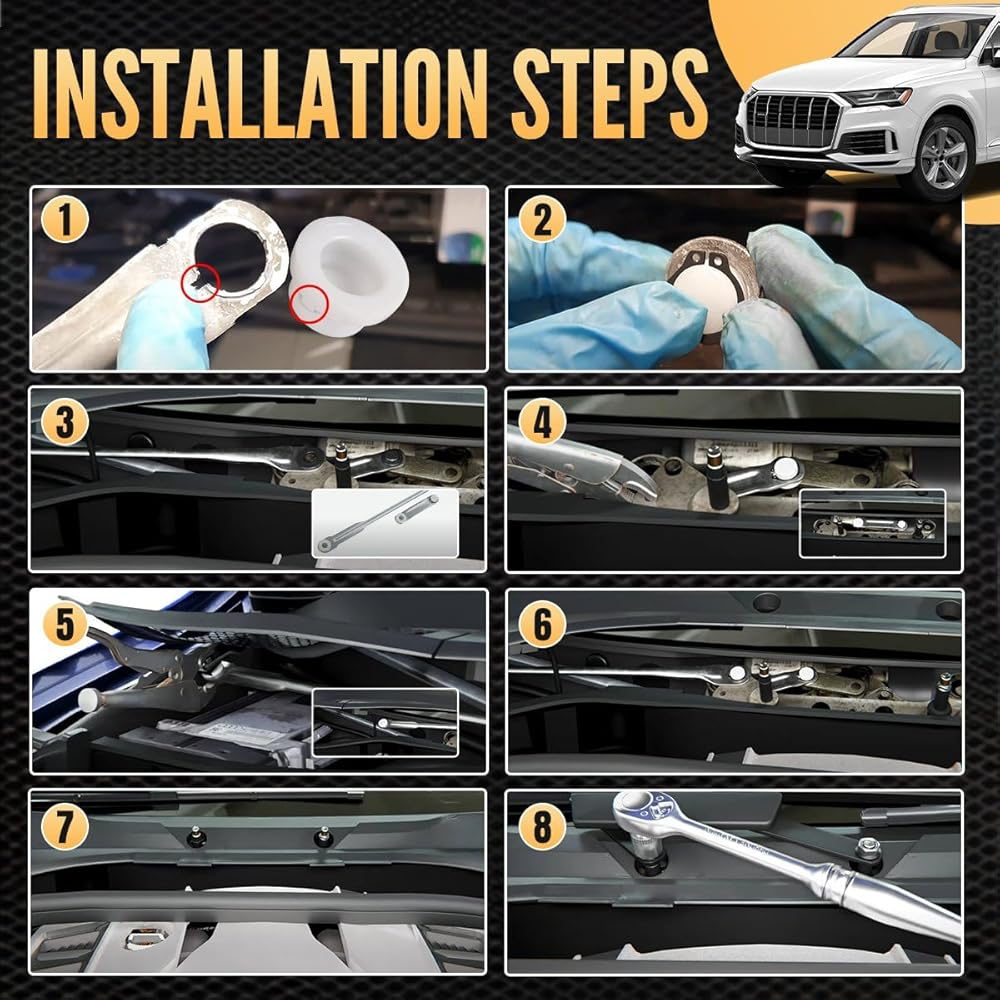 هناك حاجة إلى أدوات عامة معينة، ويتم تزويد الأطقم بتعليمات حول كيفية تركيب الشجيرات البلاستيكية في قضبان الدفع الأصلية. (سوف تحتاج إلى زوج من الزردية لكسر/إخراج الشجيرة البلاستيكية القديمة، ومبرد صغير لتنظيف الشجيرة البلاستيكية القديمة). وثقب إزالة اللدغات وكماشة مشبك على شكل حرف C