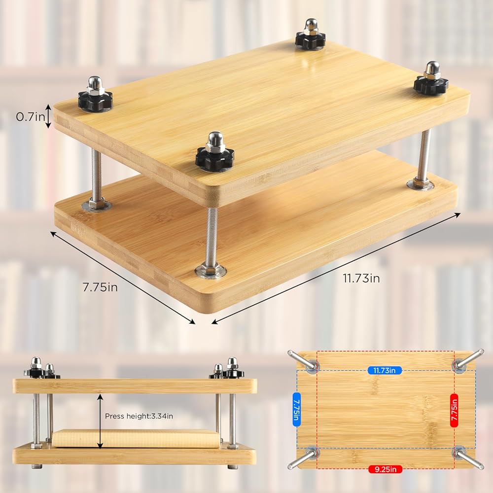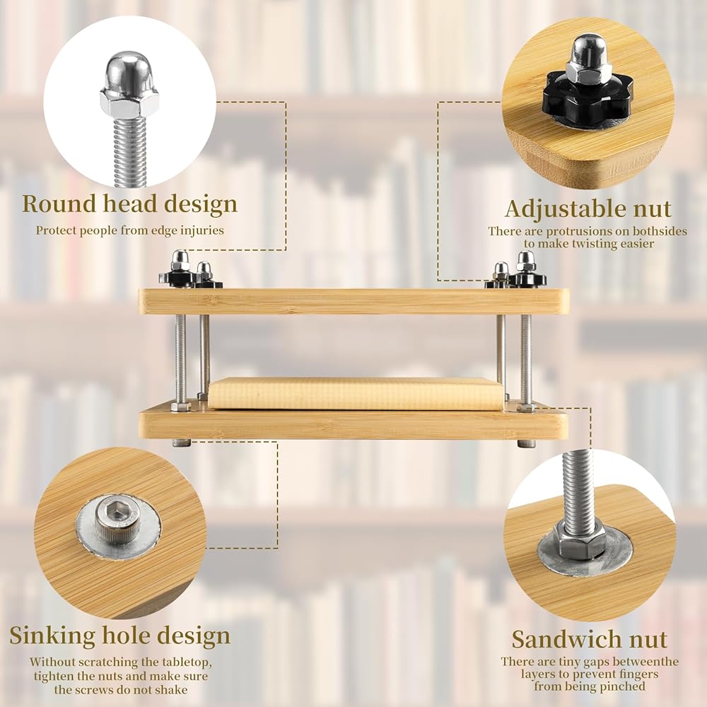 1. The wooden book binding press use threaded rod to tightly press the two boards together, And it can provides optimal pressure distribution for prolonged use.