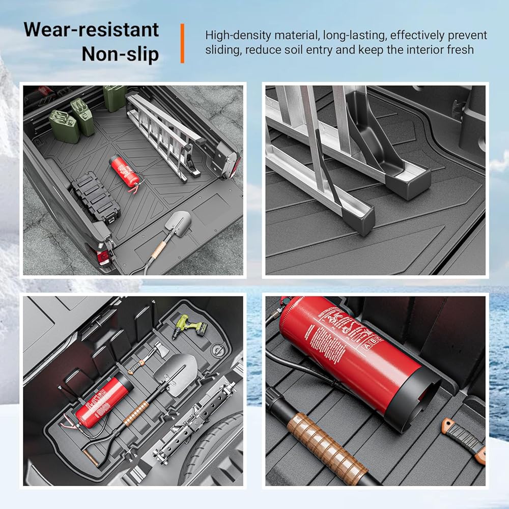 مواد عالية الجودة: بطانة الشاحنة مصنوعة من مادة TPE عالية الجودة. إنها مقاومة للخدش ومرنة وليس لها رائحة سيئة. ويمكن أن تدوم لفترة طويلة. يمكن لسجادة الحمولة أن تتحمل جميع أنواع الطقس القاسي، مثل الأمطار الغزيرة أو أيام العواصف الثلجية، وما إلى ذلك. يمكنك تنظيف السجادة بالماء وقطعة قماش.