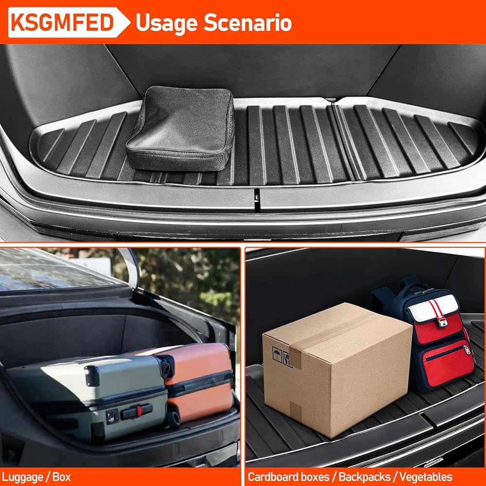 【مناسبة تمامًا لسيارة Tesla Cybertruck لعام 2023 2024】سجادات الشحن الخاصة بنا تناسب 2023-2024+ Tesla Cybertruck، وتوفر حماية كاملة من الأوساخ والطين والملح والمطر والثلج والرمل. مثالية للتنقل اليومي والسفر في العطلات والحفلات والحيوانات الأليفة. ضمان الإعداد الآمن والمريح.