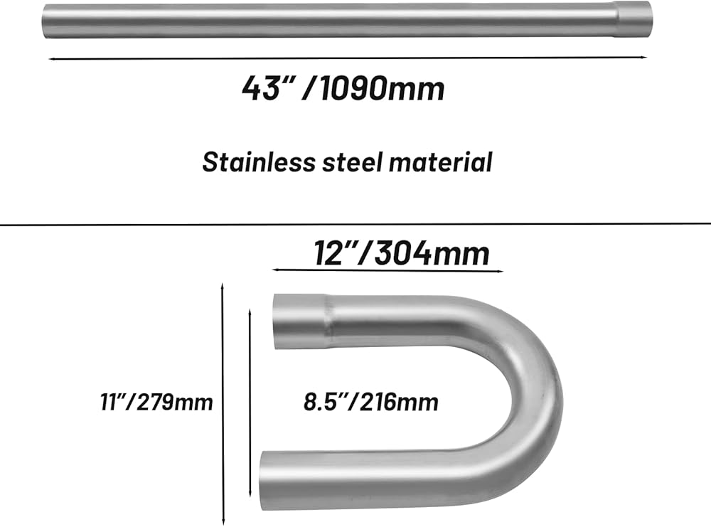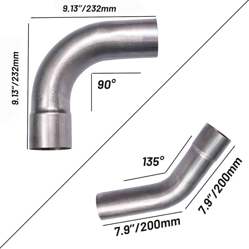 طقم أنابيب عادم من الفولاذ المقاوم للصدأ مكون من 8 قطع، بما في ذلك أنبوب انحناء المغزل (2 بوصة)