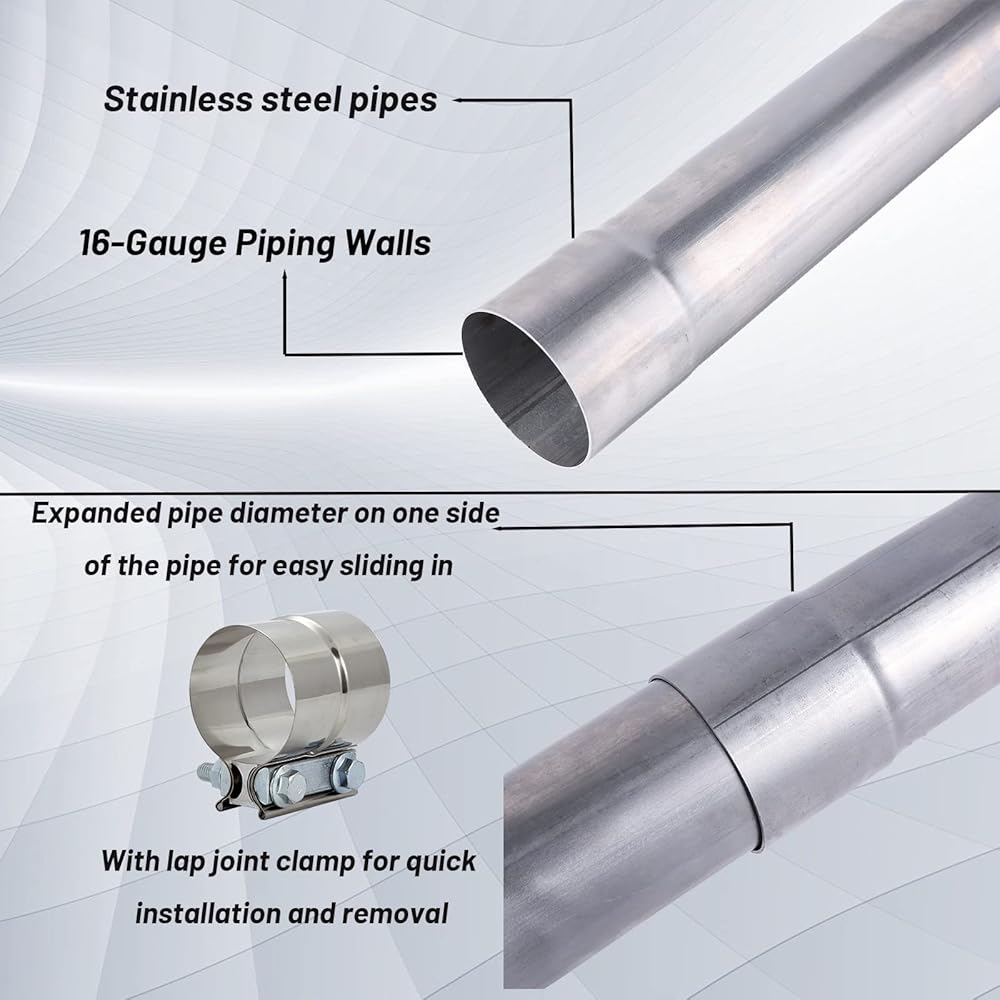 • الإعداد--ملاءمة عالمية لتعديل أنبوب العادم لنظام العادم، يمكن ربط 8 أنابيب وقصها لإنشاء نظام العادم الخاص بك.