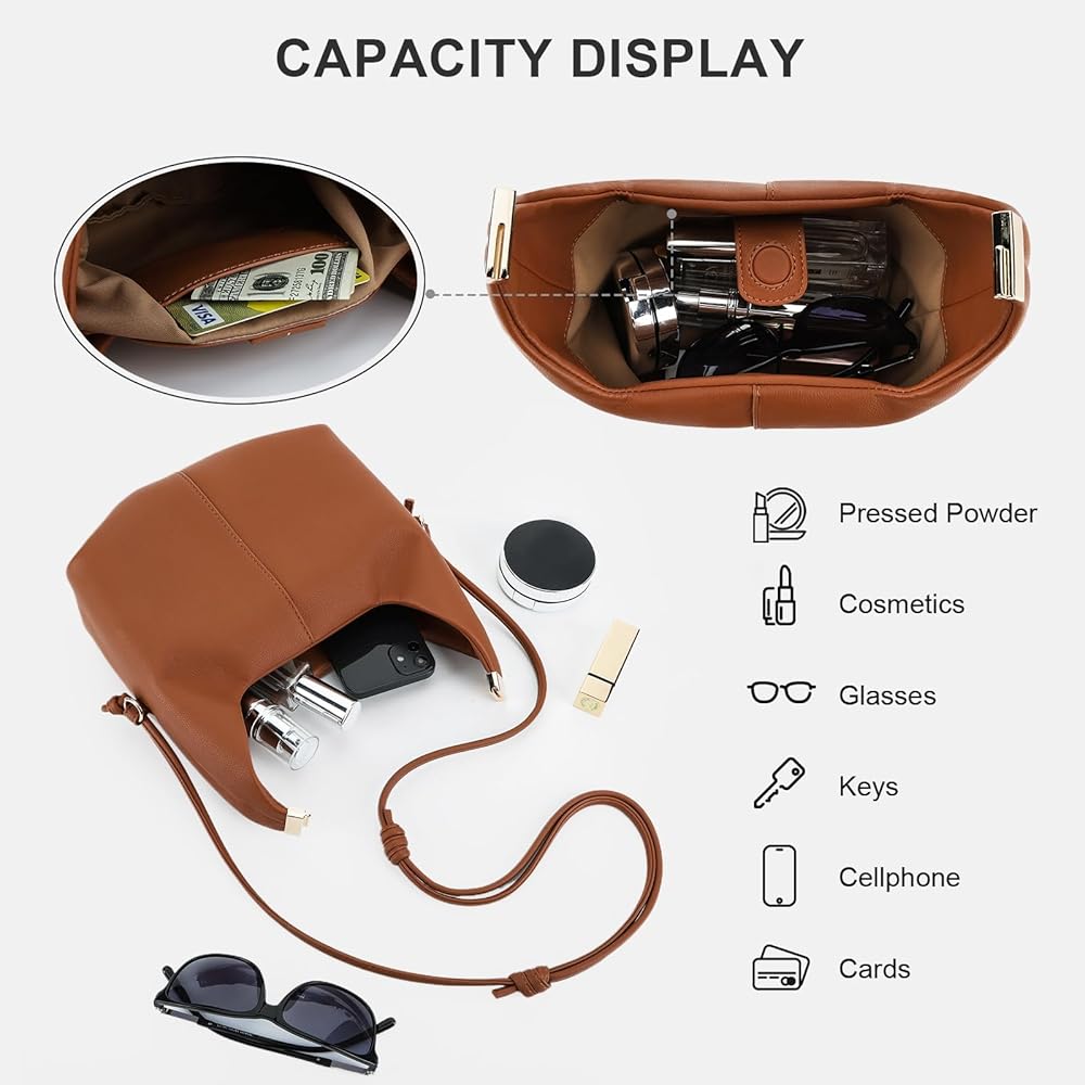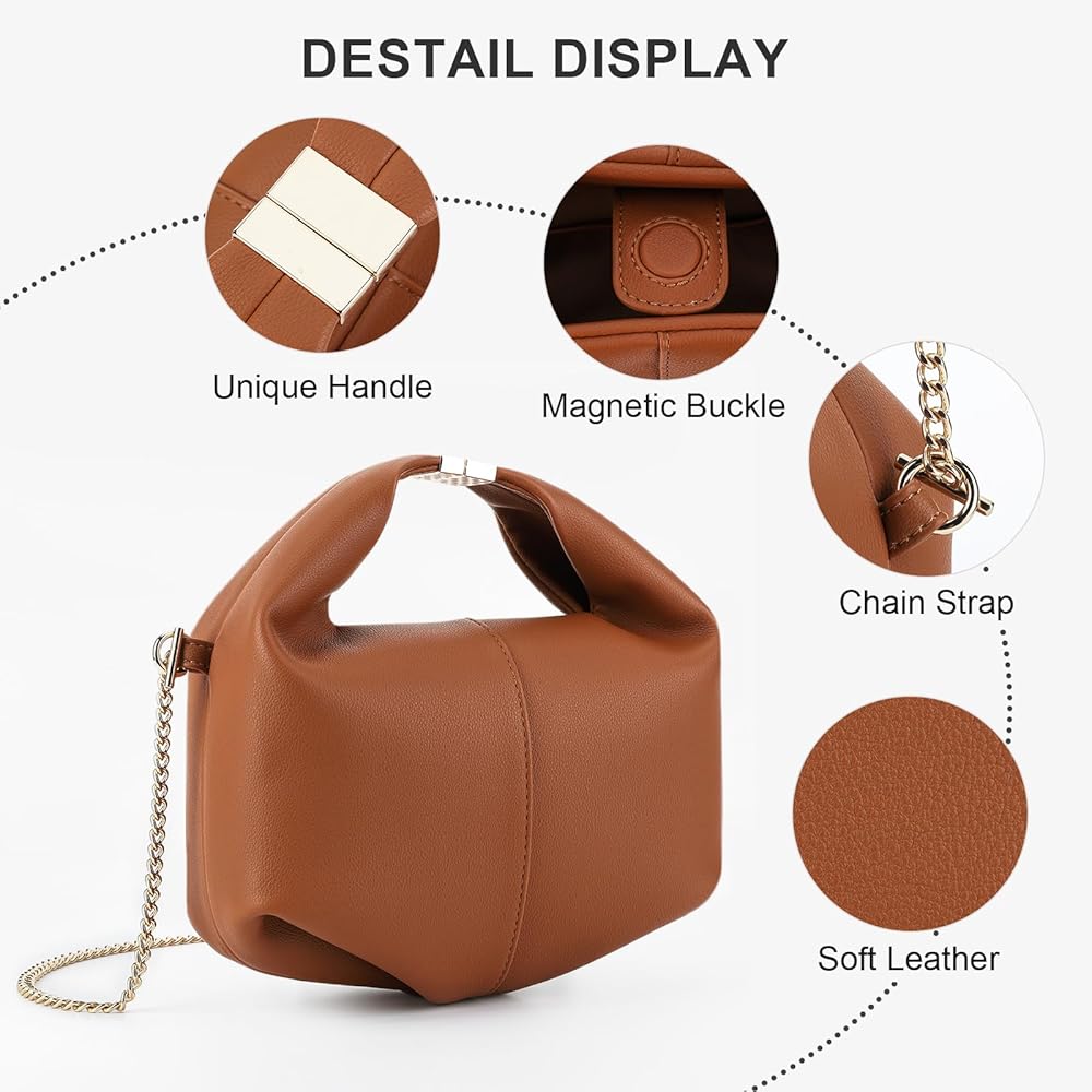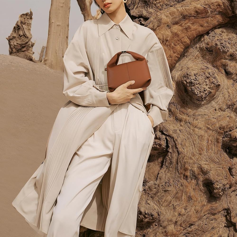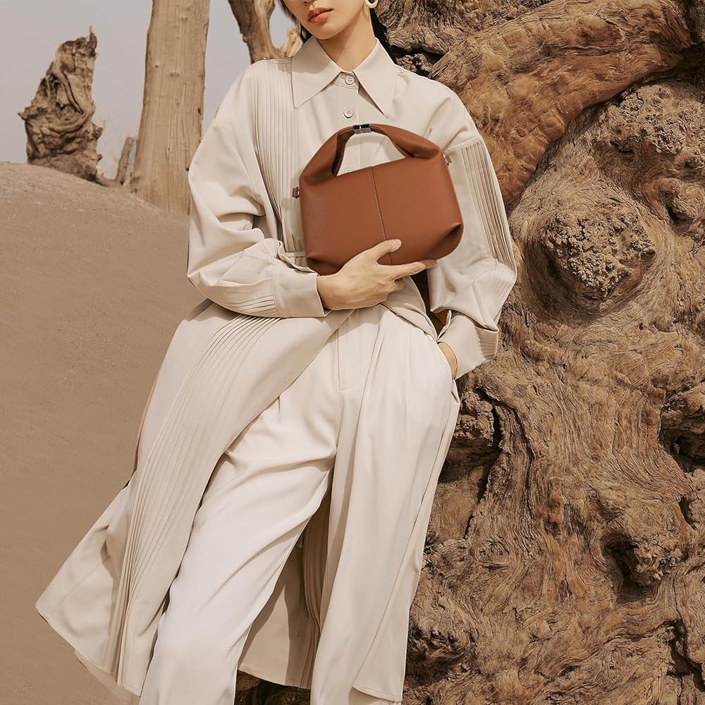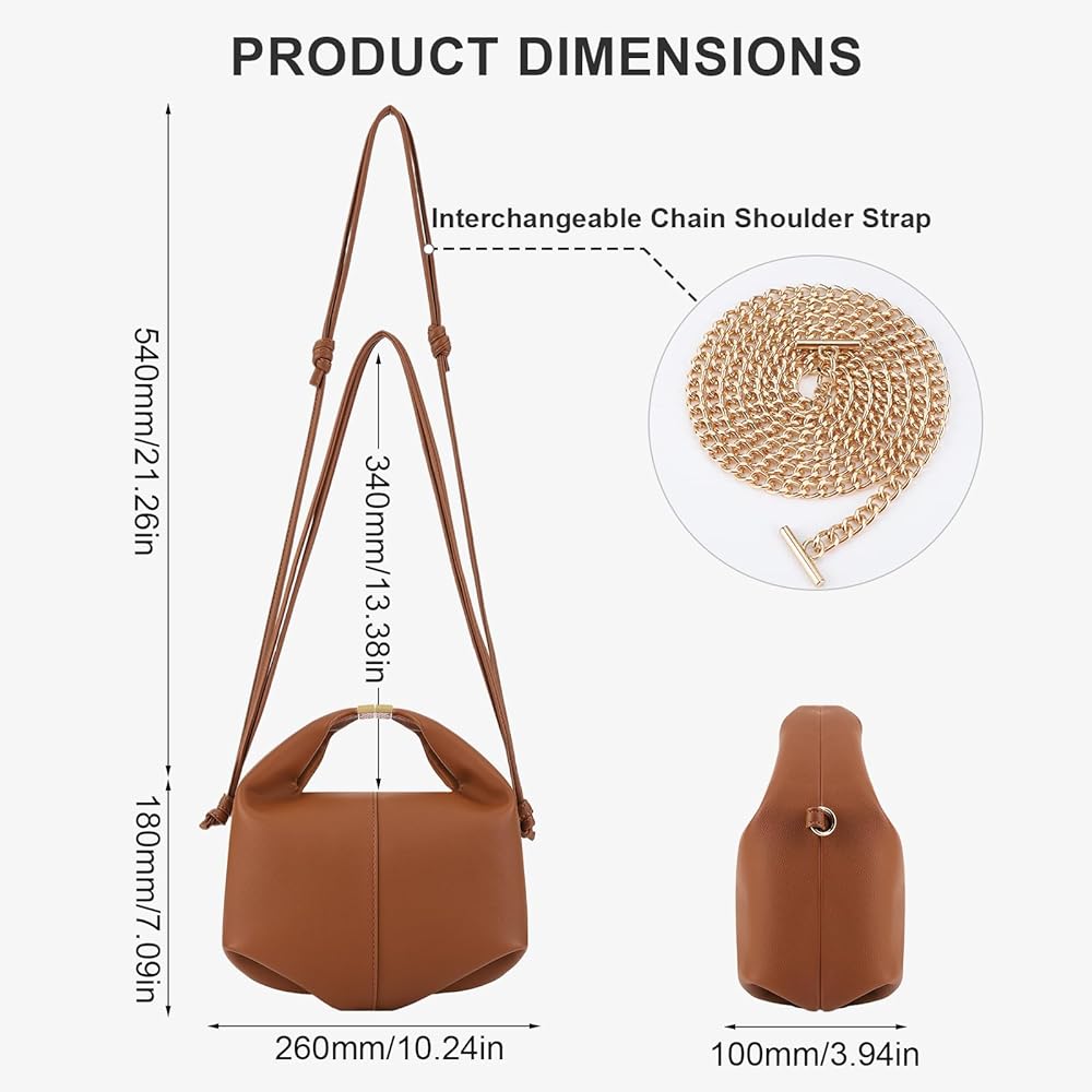 【خيارات حمل متعددة الاستخدامات】يمكنك حمل هذه الحقيبة المصنوعة من الجلد النباتي يدويًا أو على الكتف أو ارتدائها على شكل الجسم. يمكن تثبيت المقبض العلوي، مما يعطي الحقيبة شكلًا فريدًا يشبه الزلابية عند فتحها.