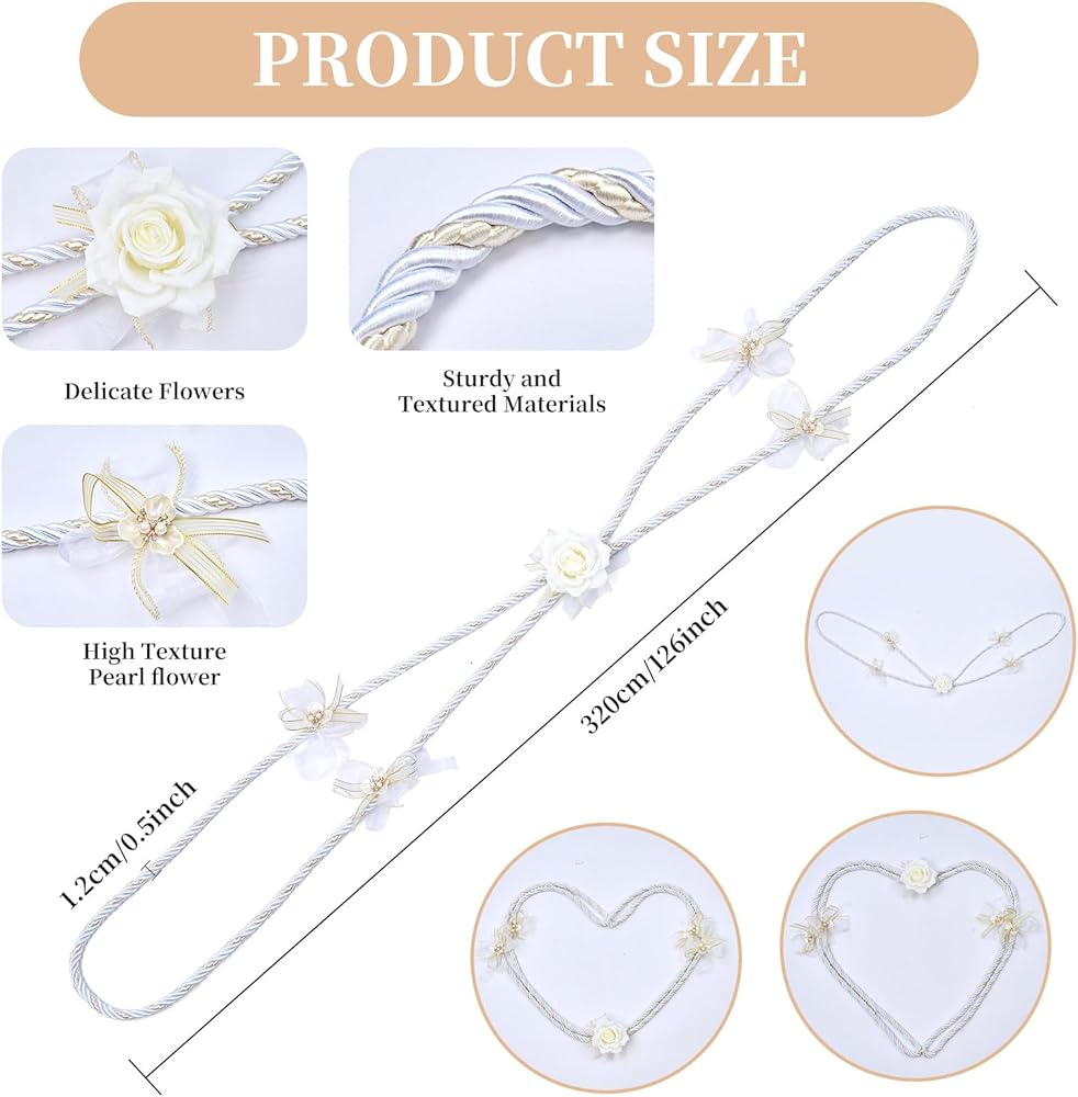 【حجم مرغوب فيه للتنوع 】 قياس الطول الإجمالي 125.98 بوصة/3.2 متر، يوفر هذا اللازو بارا بودا مساحة كافية لإحاطة الزوجين بأناقة أثناء الحفل؛ من خلال ترك ذكرى رائعة ليوم زفافك، يمكن تطبيق هذه اللاسو بشكل فعال في أماكن الزفاف المختلفة والتقاليد الثقافية، لتكون بمثابة تذكار ثمين في حياتكما المشتركة.