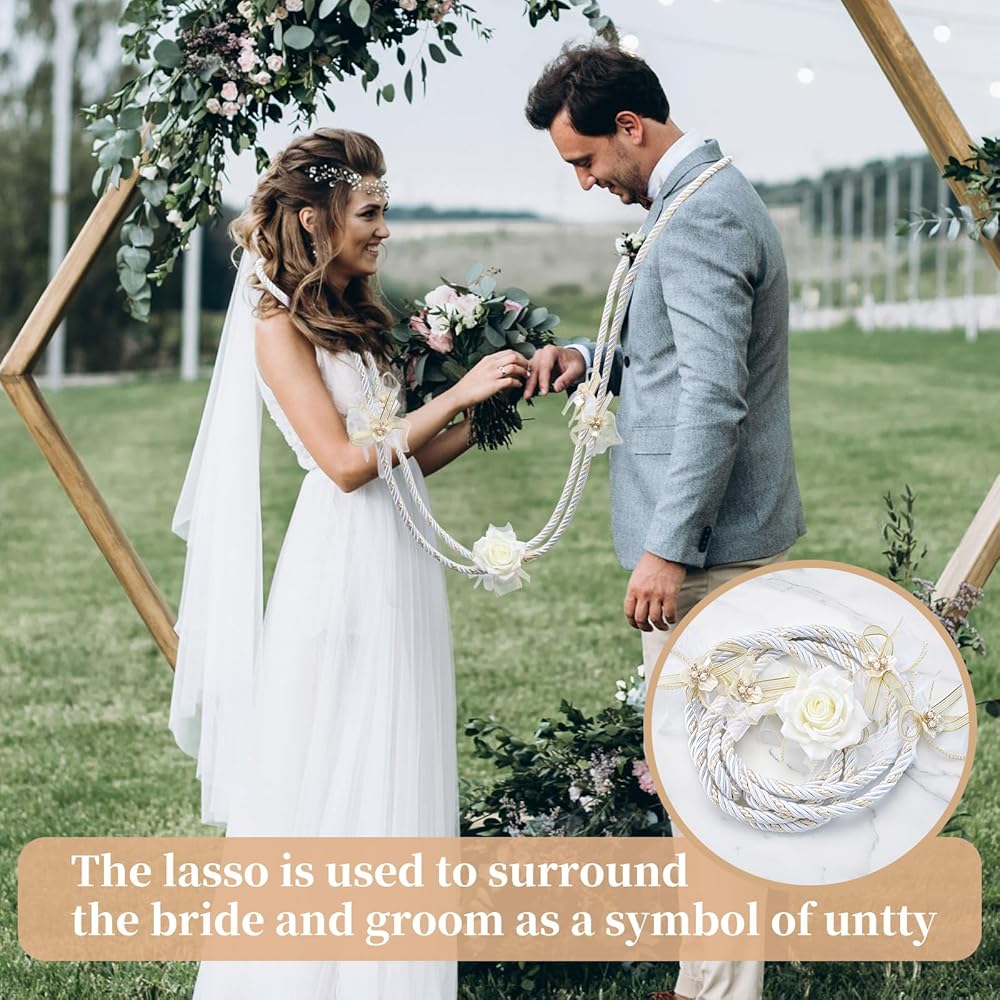 【إكسسوار زفاف تقليدي ورمزي】يرمز لاسو الزفاف التقليدي هذا إلى التزام الزوجين الثابت تجاه بعضهما البعض، وهو مزيج جميل من التقاليد والتصميم المعاصر. إنها ليست مجرد لاسو، إنها شعار للحب الدائم الذي سوف تعتز به وستعرضه فيه. منزلك.