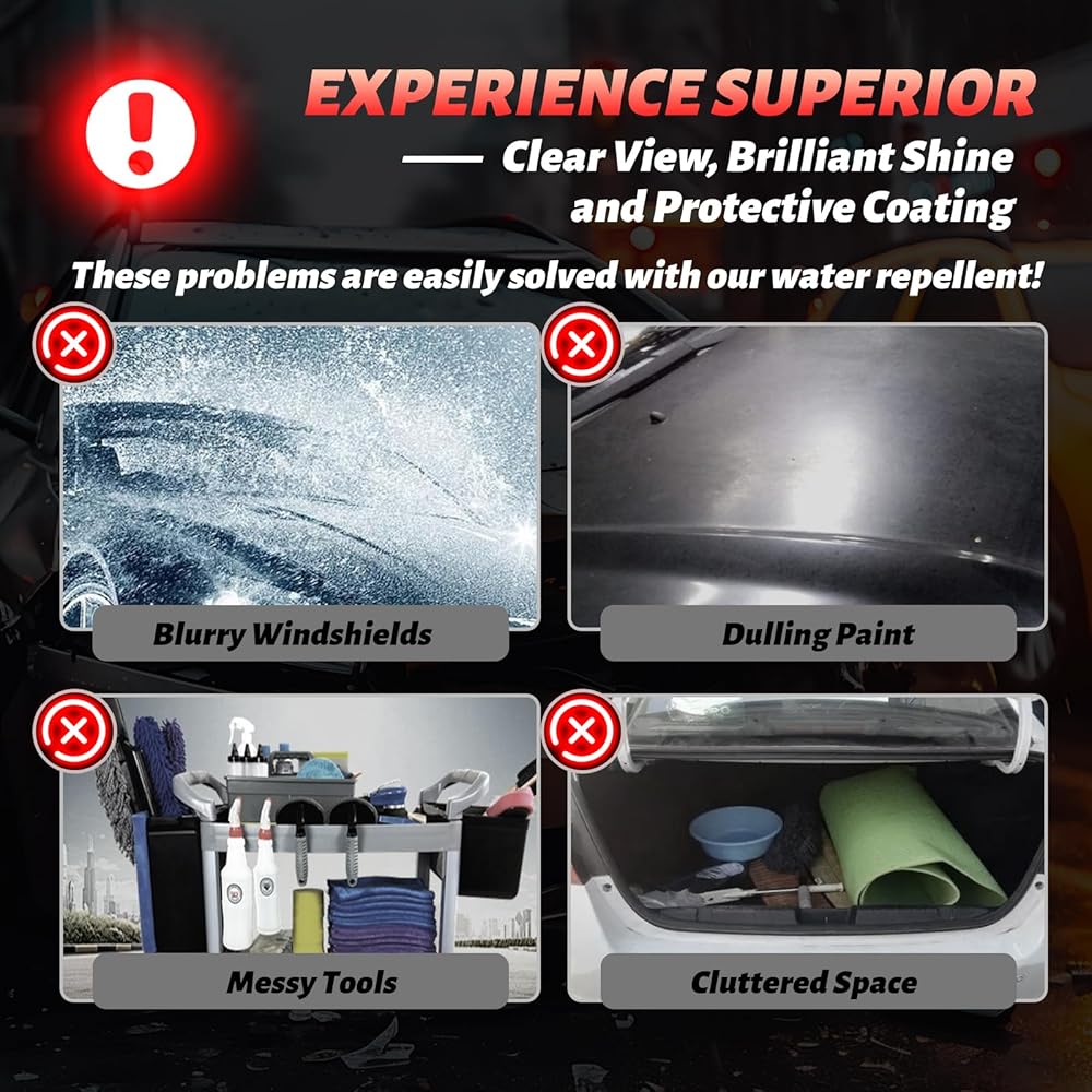 مقاومة فائقة للماء: يشكل حاجزًا متطورًا كارهًا للماء على نوافذ وأسطح سيارتك، مما يتسبب في تكوّن الماء وانزلاقه دون عناء، مما يحسن الرؤية بشكل كبير أثناء المطر.