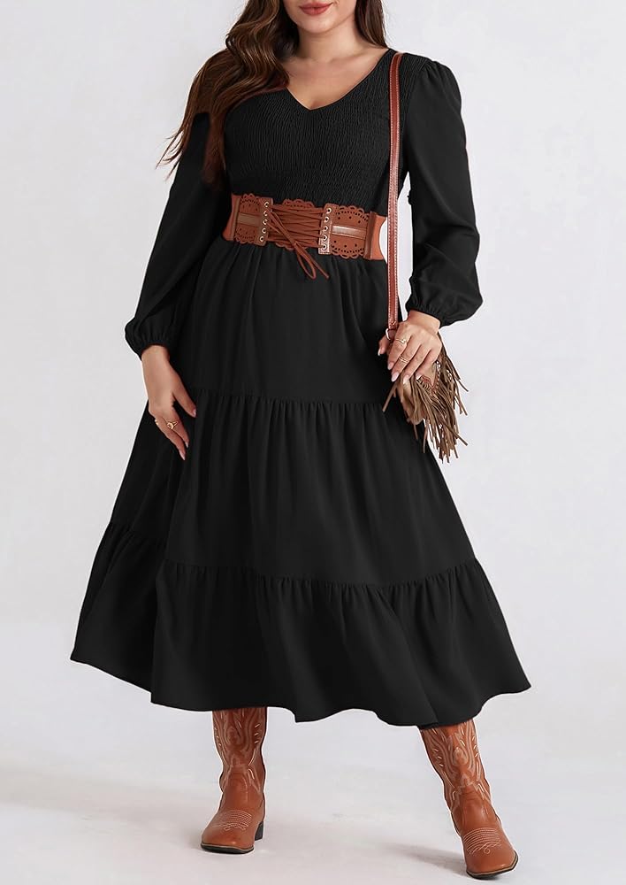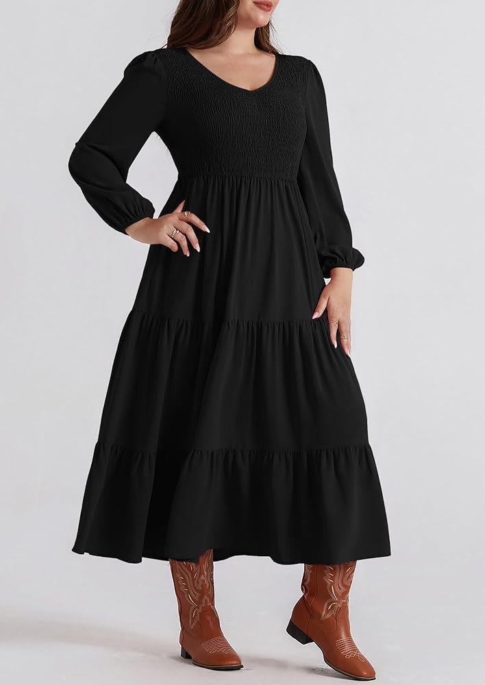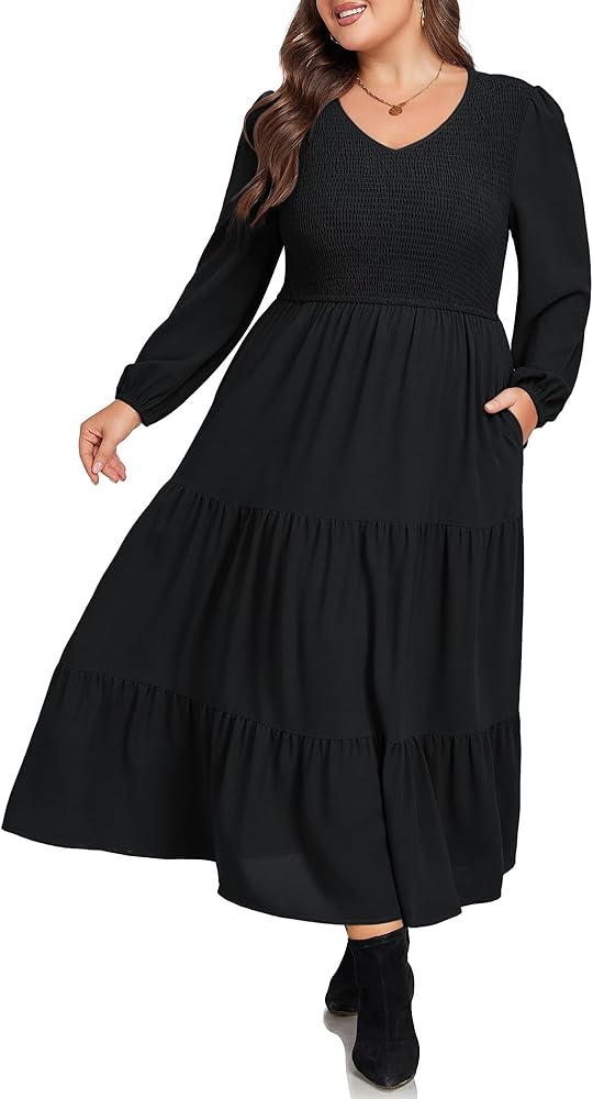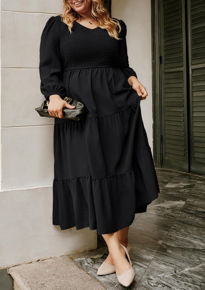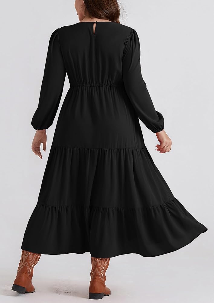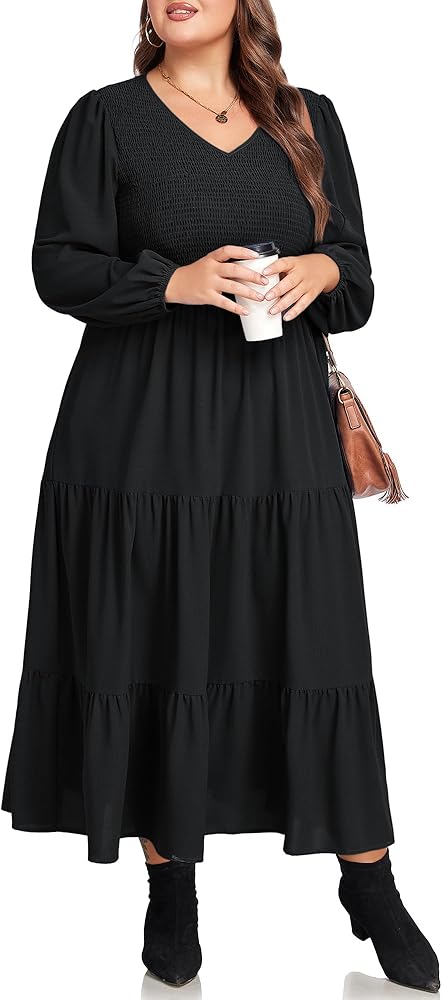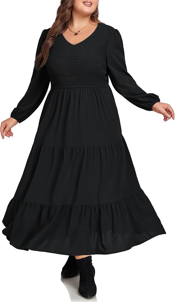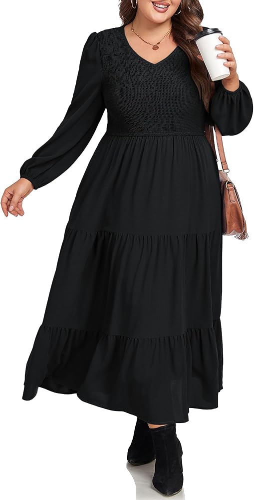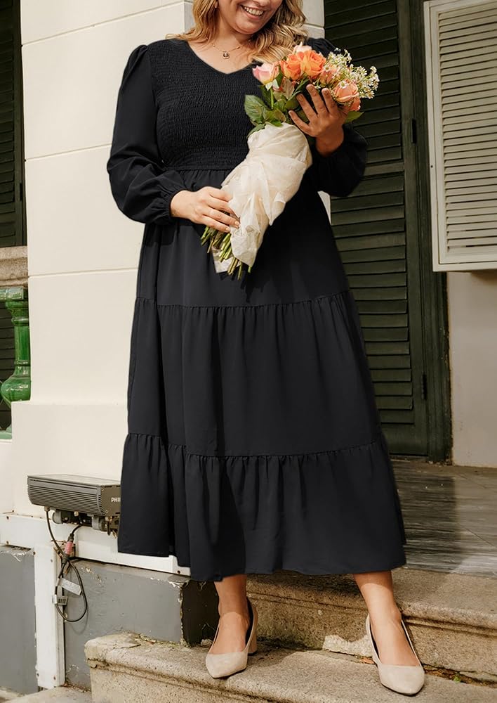 【نسيج ناعم وقابل للتمدد】 هذا الفستان ذو الأكمام الطويلة والمقاس الكبير مصنوع من نسيج ناعم وقابل للتمدد وغير شفاف، مما يوفر الراحة والثقة سواء كنت في نزهة غير رسمية أو حدث رسمي. تضمن لك المادة المسامية البقاء مرتاحًا طوال اليوم.